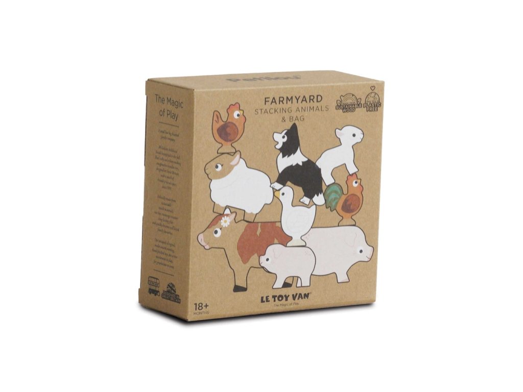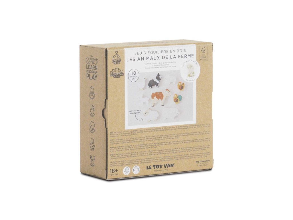Užijte si senzorickou zábavu s touto sadou farmářských zvířátek! Sada se skládá z 9 dílků - tedy pejska, ovečky, krávy, prasátka se selátkem, kachny, slepičky a kohouta, kteří mají velikost tak akorát pro dětské ruce. Figurky lze na sebe stohovat a vytvářet tak vysoké "věže". Děti mohou při hraní získat nejen nové poznatky o obyvatelích žijících na farmě, ale zároveň si i procvičit zručnost a tolik důležitou jemnou motoriku. Díky skladnosti je hračka perfektní volbou i na cestách (dílky jsou uschovány v bavlněném pytlíku). Skládací věž Farma je vyrobena ze dřeva s certifikací FSC® (dřevo z lesů obhospodařovaných udržitelným způsobem) a ozdobena barvami na vodní bázi bezpečnými pro děti. Hračky s účelemVšechny hračky firmy Le Toy Van jsou vyrobeny s cílem – aby dlouho vydržely. Designovány s láskou zkušenými řemeslníky za použití etických praktik a udržitelných materiálů, které jsou laskavější k naší planetě. Hlavní vlastnosti: textilní pytlík, 9 figurek zvířatzaoblené hranyvyrobeno eticky z udržitelného dřevatestováno dle nejpřísnějších standardůmalováno netoxickými barvami na bázi vodyinspiruje k představivé hře Značka a certifikát FSC® (Forest Stewardship Council) zaručuje, že dřevo, ze kterého byl produkt vyroben, nebylo vytěženo nelegálně a pochází z lesů obhospodařovaných šetrným či přírodě blízkým způsobem, ve kterém jsou dodržovány přísné environmentální a sociální požadavky. Značka FSC® na výrobku znamená, že svým nákupem pomáháte chránit lesy a podporujete šetrné, odpovědné či přírodě blízké hospodaření, díky kterému jsou naše lesy stabilnější, zdravější, mají přirozenou druhovou skladbu a lépe odolávají negativním následkům klimatických změn.