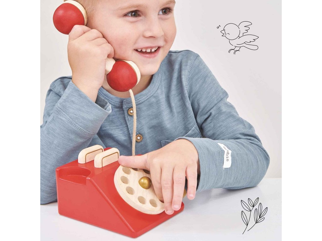 Crr, crr! Krásný retro telefon tak, jak ho znají starší ročníky. Je vyroben z přírodního a odolného kaučukového dřeva, malován sytě červenou barvou, najdete na něm také zlaté detaily. Děti mohou zavolat svým panenkám nebo plyšákům, zvonek ve sluchátku a otočný ciferník hře dodají realistický ráz. Děti si kromě motoriky a představivosti procvičí také poznávání čísel.Tato udržitelná hračka je stavěna na každodenní hru, podpoří děti v brzkém rozvoji, zlepší jejich zručnost a jemnou motoriku. Hračky s účelemVšechny hračky firmy Le Toy Van jsou vyrobeny s cílem – aby dlouho vydržely. Designovány s láskou zkušenými řemeslníky za použití etických praktik a udržitelných materiálů, které jsou laskavější k naší planetě. Hlavní vlastnosti: zvonek ve sluchátkutestováno dle nejpřísnějších standardůvyrobeno eticky z udržitelného dřevamalováno netoxickými barvami na bázi vodyinspiruje k představivé hřekompatibilní s dalšími produkty Honeybake Honeybake kolekce: Hračky v této kolekci jsou vhodné k objevování, pomohou dětem s rozvojem představivosti, sociálních a verbálních dovedností a kognitivních funkcí. Tradiční design s moderními detaily děti jistě bude bavit. Honeybake je kolekce Le Toy Van, která vyhrála nejvíce ocenění, a to za design, kvalitu, bezpečnost a také za vzdělávací a herní hodnotu.