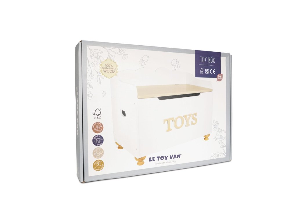 Okouzlující a ručně vyrobená dřevěná truhla na hračky, do které si děti mohou uložit všechny své hračky a poklady. Tento produkt je univerzální, využijete jej nejen jako elegantní úložný prostor, ale také jako lavici na sezení pro děti! Truhla má pomalu se zavírající panty, dřevěné nohy, reliéfní nápis. Neutrální design kombinuje klasickou bílou a přírodní dřevo. Krásný kus nábytku, který překoná i zkoušku času. Vyrobeno z udržitelného a odolného dřeva, vydrží vám opravdu dlouho. Hlavní vlastnosti: maximální nosnost 50 kgdřevěná truhlavyrobeno eticky z udržitelného FSC dřevamalováno netoxickými barvami na bázi vody Honeybake kolekce: Hračky v této kolekci jsou vhodné k objevování, pomohou dětem s rozvojem představivosti, sociálních a verbálních dovedností a kognitivních funkcí. Tradiční design s moderními detaily děti jistě bude bavit. Honeybake je kolekce Le Toy Van, která vyhrála nejvíce ocenění, a to za design, kvalitu, bezpečnost a také za vzdělávací a herní hodnotu. Značka a certifikát FSC® (Forest Stewardship Council) zaručuje, že dřevo, ze kterého byl produkt vyroben, nebylo vytěženo nelegálně a pochází z lesů obhospodařovaných šetrným či přírodě blízkým způsobem, ve kterém jsou dodržovány přísné environmentální a sociální požadavky. Značka FSC® na výrobku znamená, že svým nákupem pomáháte chránit lesy a podporujete šetrné, odpovědné či přírodě blízké hospodaření, díky kterému jsou naše lesy stabilnější, zdravější, mají přirozenou druhovou skladbu a lépe odolávají negativním následkům klimatických změn.