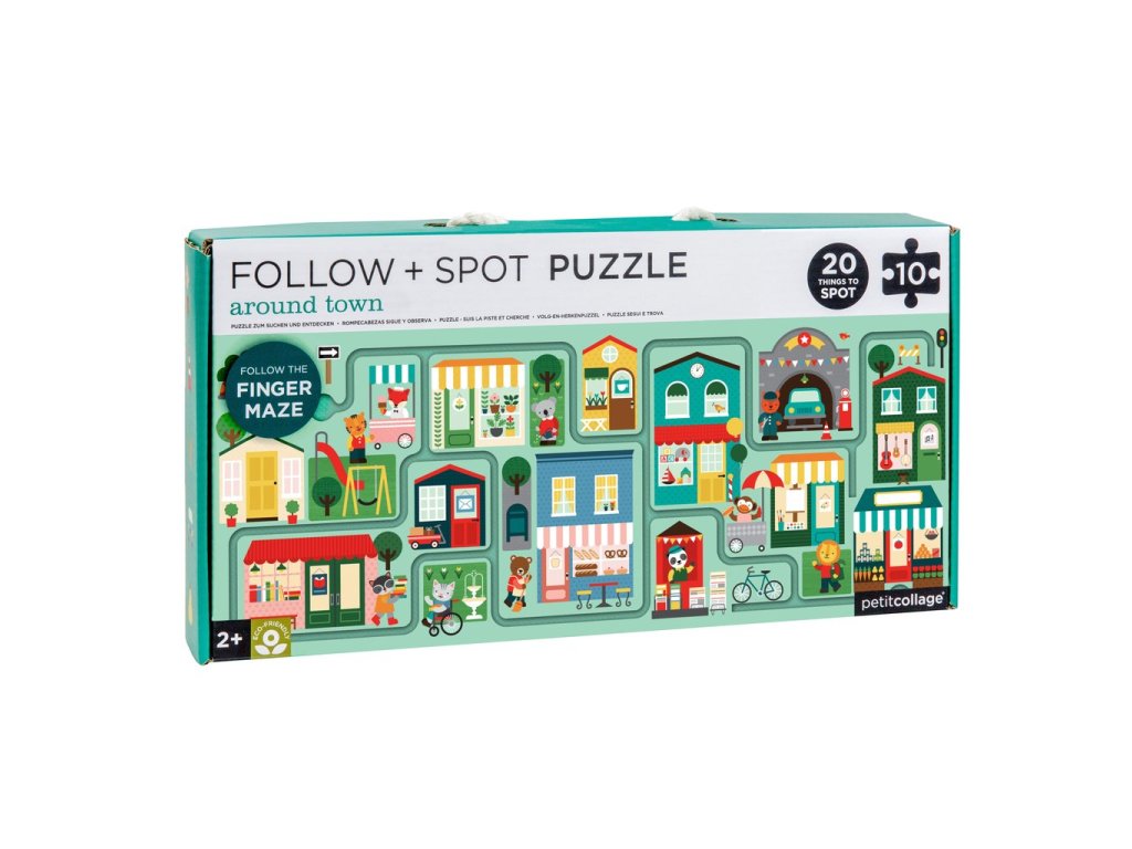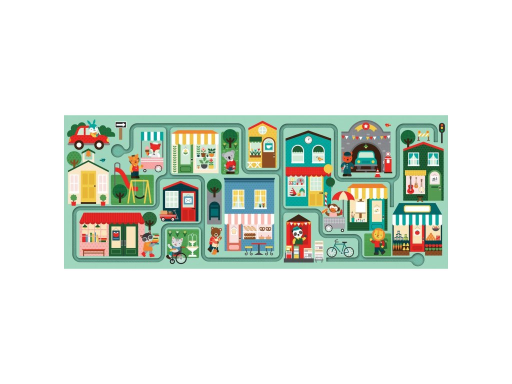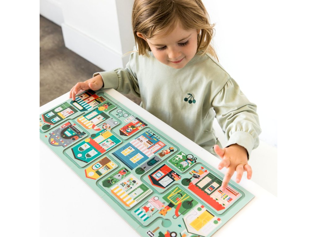 Pohybujte se po cestičce v obrázku a dostaňte zajíčka do obchodu s potravinami! Najdete v tomto rušném městě všech 20 předmětů? Zábava začíná po složení tohoto 10 dílného puzzle. Děti se prstem pohybují po cestičce a zároveň se snaží najít 20 předmětů rozmístěných po městě. Hlavní vlastnosti: Obsahuje 10 velkých dílků puzzleVyrobeno z recyklovaného papíru, natištěno inkoustem ze zeleninySplňuje všechny bezpečnostní normy