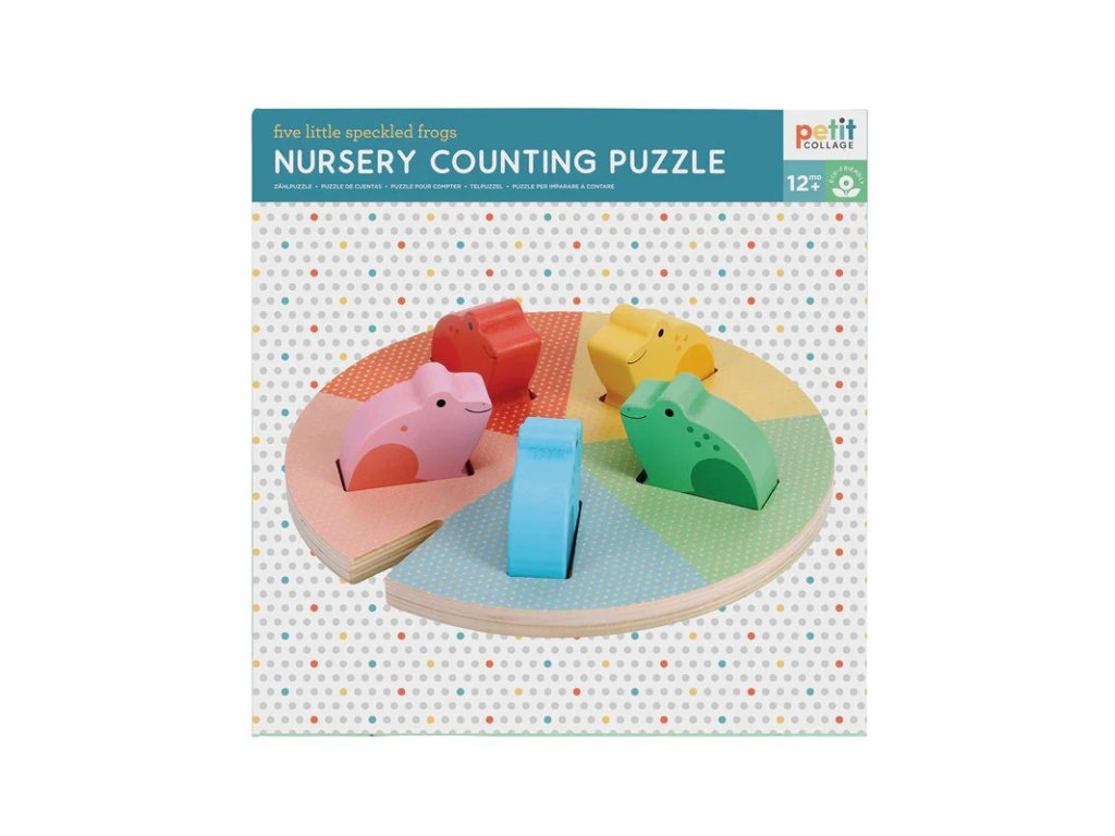Petit Collage Dřevěná Školka počítání: Malé strakaté žáby