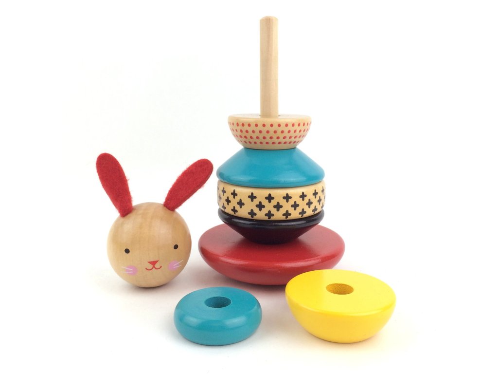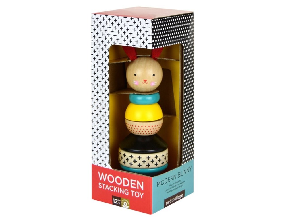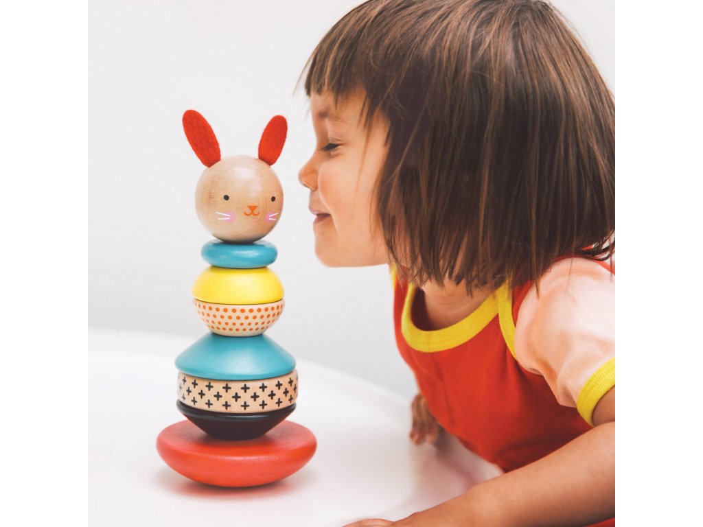 Nasazovací věž králíček se svým designem a různými možnostmi postavení přinese spoustu zábavy našim nejmenším. Věž má zaoblenou základnu, různé tvary a barvy kroužků a uši z vlněné plsti. Věž byla finalistkou soutěže 2018 Made For Mum's Awards. Hlavné vlastnosti: vyrobeno ze dřeva z udržitelných zdrojůbarveno šetrně k životnímu prostředísplňuje bezpečnostní normy CPSIA, ASTM a CE