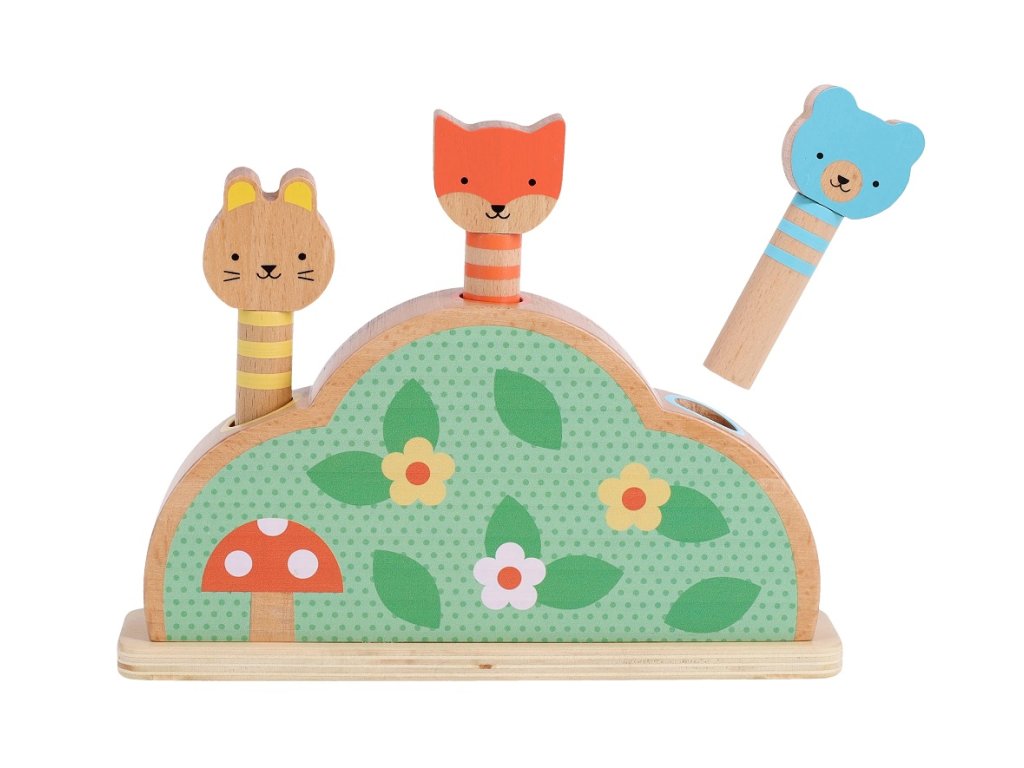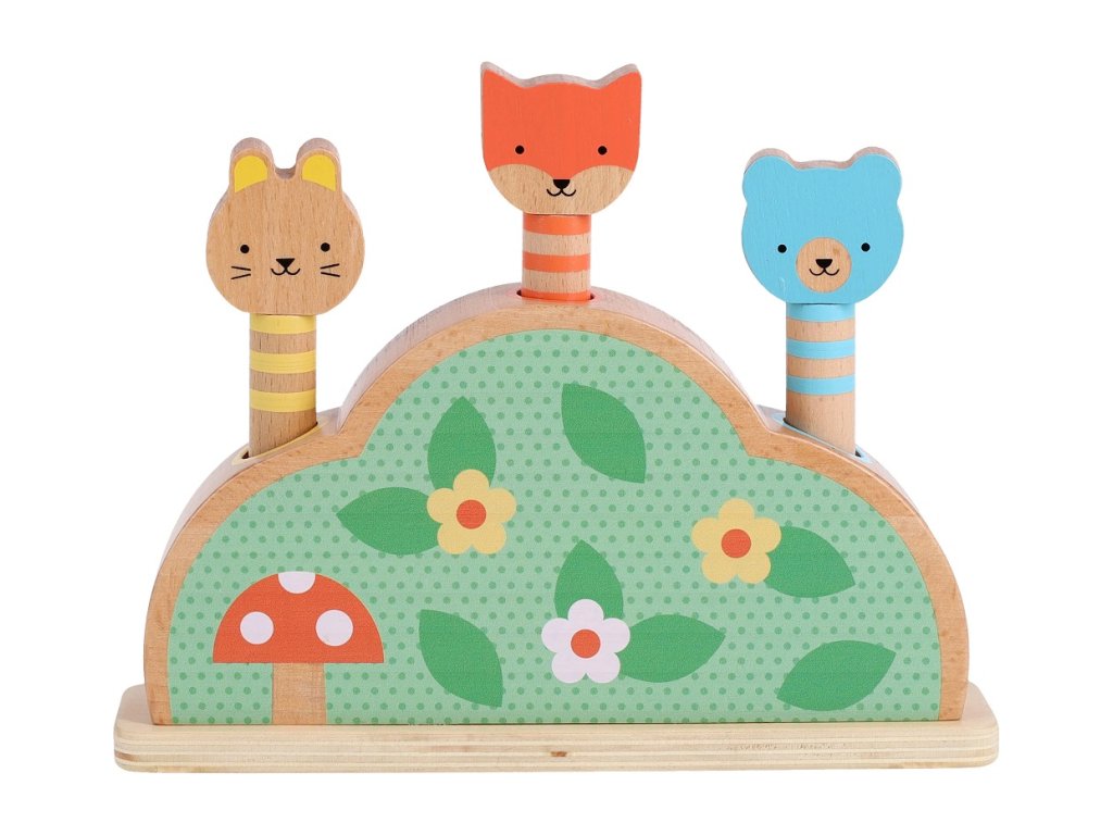 Tlačte, mačkejte a zažijte úžasnou zábavu s touto robustní dřevěnou hračkou. Děti si tuto hru zamilují! Obsahuje tři postavičky kolíčků a základnu odrazového můstku. Zvířátka jsou nabitá pružinou a připravena na vyskočení ze svého pelíšku. Hra rozvíjí jemnou motoriku, koordinaci rukou a očí, rozpoznávání barev a tvarů a rozvíjí porozumění příčinám a následkům. Vyskakovací hračka je vyrobena s krásnými ilustracemi v jemných pastelových barvách ze dřeva s certifikací FSC® a potištěna netoxickými inkousty na vodní bázi. Obal je vyroben ze 75 % z recyklovaných materiálů, šetrný k životnímu prostředí, potištěn rostlinnými inkousty. Je perfektním dárkem pro nejmenší. Hlavní vlastnosti: dřevěná otočná hračkaobsahuje 3 kostky z masivního dřevavyrobeno z FSC® certifikovaného dřeva a potištěno netoxickou vodou ředitelnou barvouvhodné od 1+