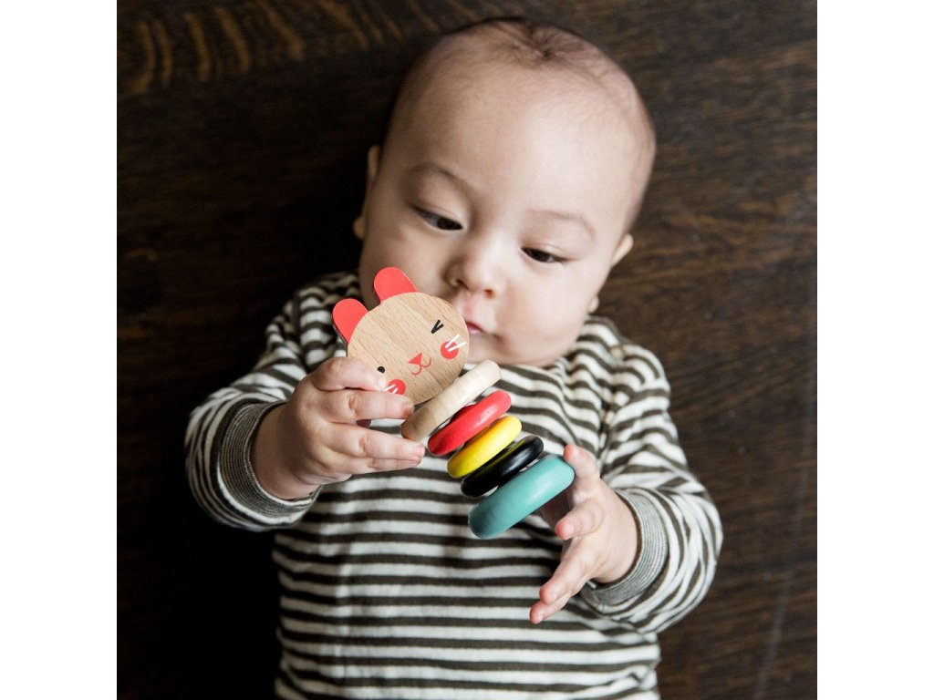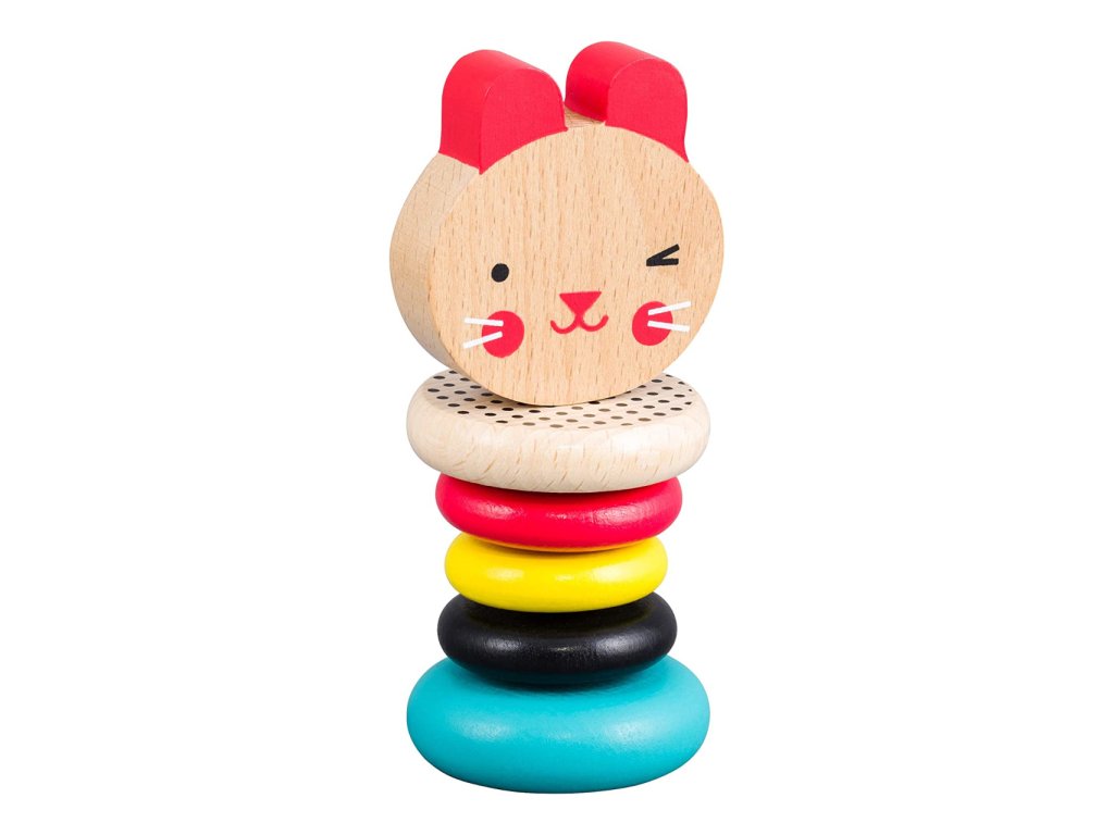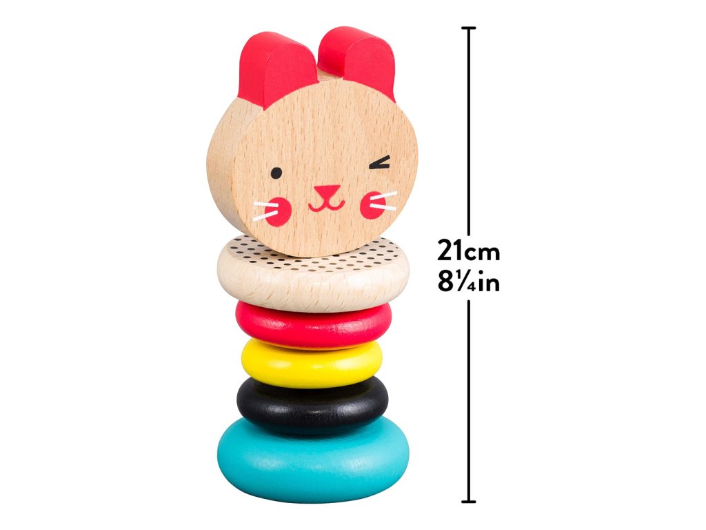 Barevné chrastítko vydává při jemném otřesu uklidňující zvuk klepání. Pět hladkých prstenů z bukového dřeva je ideální pro uchopení dětskými ručičkami. Zářivé barvy a vzory vyvolávají v dětech zvídavost a zajíčka si oblíbí každé malé dítě. Hlavní vlastnosti: Vyrobeno z certifikovaného dřeva a barveno netoxickými přírodními barvami na vodní báziOdpovídá standardům CPSIA, ASTM, EU a CE Značka a certifikát FSC® (Forest Stewardship Council) zaručuje, že dřevo, ze kterého byl produkt vyroben, nebylo vytěženo nelegálně a pochází z lesů obhospodařovaných šetrným či přírodě blízkým způsobem, ve kterém jsou dodržovány přísné environmentální a sociální požadavky. Značka FSC® na výrobku znamená, že svým nákupem pomáháte chránit lesy a podporujete šetrné, odpovědné či přírodě blízké hospodaření, díky kterému jsou naše lesy stabilnější, zdravější, mají přirozenou druhovou skladbu a lépe odolávají negativním následkům klimatických změn.