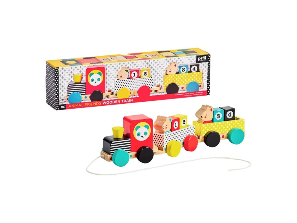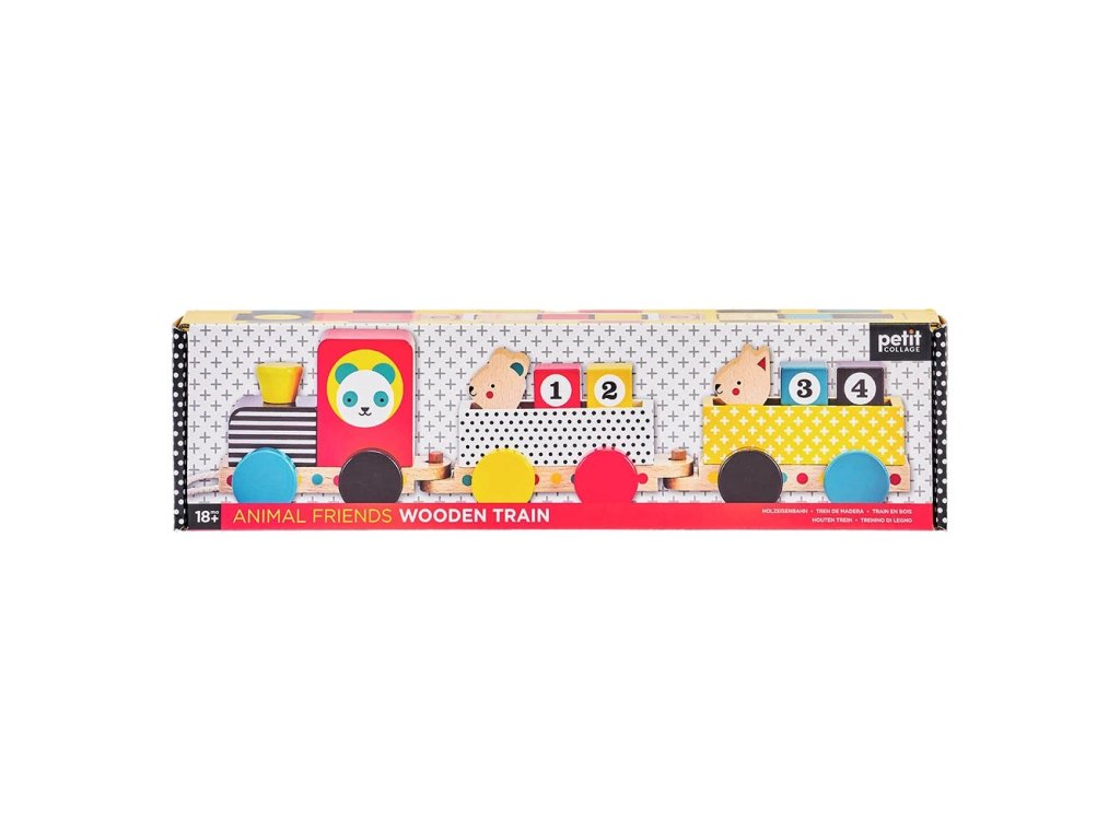Petit Collage Dřevěný vláček s čísly a zvířecími kamarády