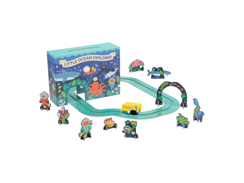 Čekají na vás neuvěřitelná podvodní dobrodružství! Natáhněte dřevěnou ponorku a sledujte, jak se pohybuje po mořském dně. Projede korálovým útesem, kolem potápěčů hledajících poklad, její posádka uvidí mnoho druhů mořských živočichů. Perfektní hračka pro hodiny představivé hry, vhodná pro děti od 3 let. Krabici lze díky bavlněné šňůrce jednoduše přenášet. Potištěno netoxickými barvami na bázi vody. Hlavní vlastnosti: dřevěná natahovací ponorka, 8 dílků kolejnic, 10 dílků postavičekjednoduše sestavitelná traťbaleno bez plastu s ohledem na životní prostředívhodné domů i na cestyFSC papírpotištěno netoxickými barvami na bázi vody Značka a certifikát FSC® (Forest Stewardship Council) zaručuje, že dřevo, ze kterého byl produkt vyroben, nebylo vytěženo nelegálně a pochází z lesů obhospodařovaných šetrným či přírodě blízkým způsobem, ve kterém jsou dodržovány přísné environmentální a sociální požadavky. Značka FSC® na výrobku znamená, že svým nákupem pomáháte chránit lesy a podporujete šetrné, odpovědné či přírodě blízké hospodaření, díky kterému jsou naše lesy stabilnější, zdravější, mají přirozenou druhovou skladbu a lépe odolávají negativním následkům klimatických změn.