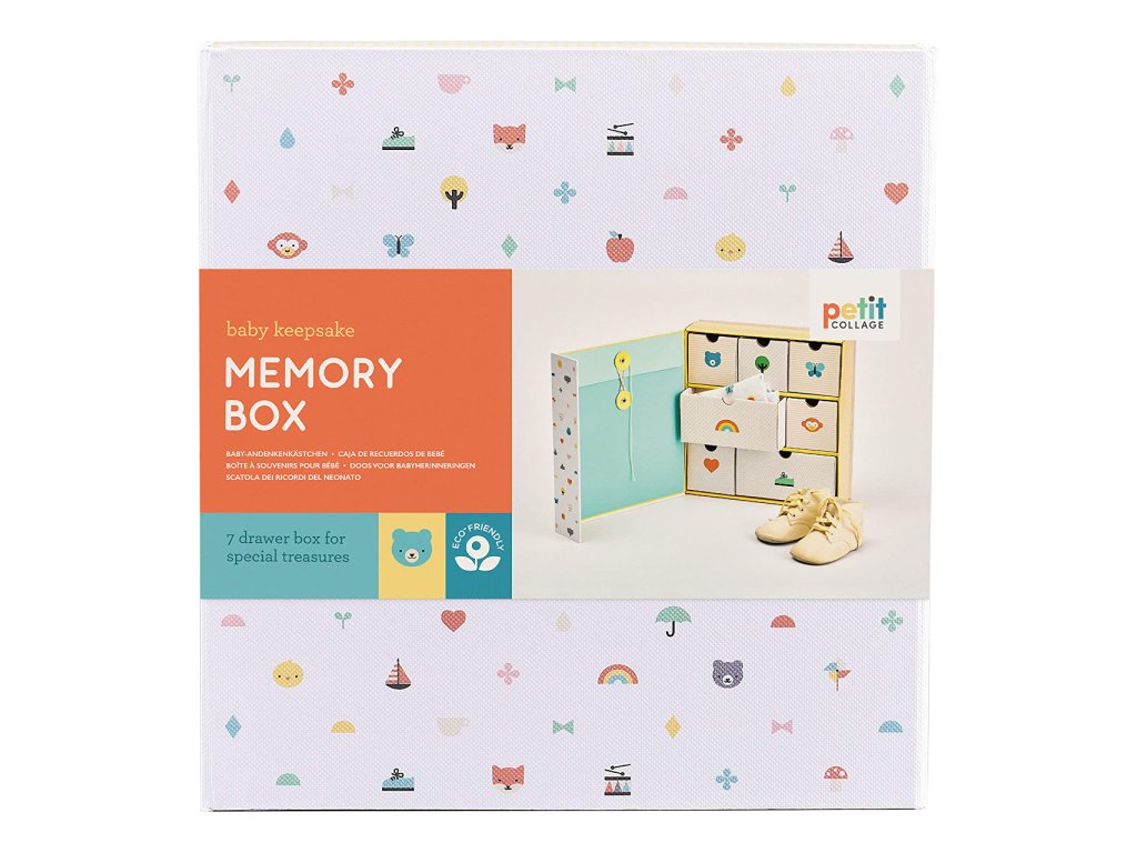 Krabička vzpomínek je ideální krabičkou na všechny dárky, které Vaše dítko dostane jako novorozeně od svých nejbližších. Tato ekologicky šetrná krabička vzpomínek od Petit Collage uchová všechny drahocenné dárky od prvního kusu oblečení až po první ostříhání. Hlavní vlastnosti: Obsahuje 7 šuplíčků a kapsu k uložení dárkůBaleno bez použití plastů