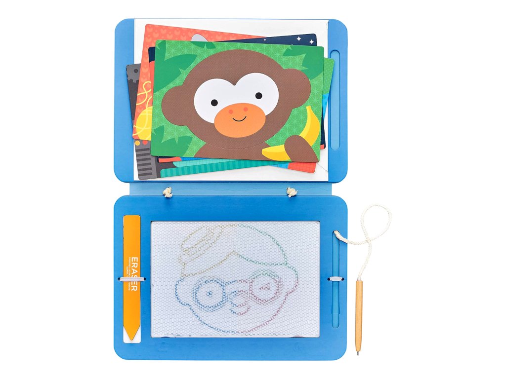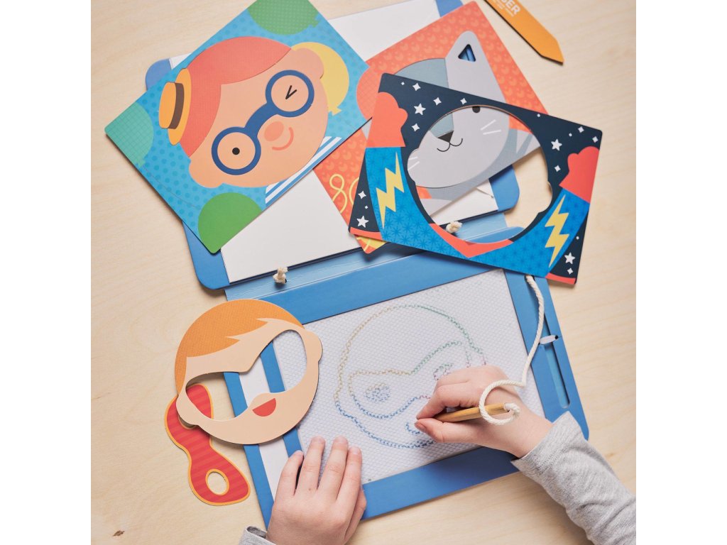 Rozprouděte představivost dětí s touto magnetickou kreslící tabulkou! Perfektní kreativní hračka domů i na cesty, má magickou tužku, která je připevněna k tabulce provázkem. Dále zde najdete mízítko a 5 ks předlohy pro kreslení. Když zrovna nekreslíte, můžete předlohy uložit do kapsy tabulky. Přiložte mizítko z druhé strany tabulky a rychle vymažte své umělecké dílo – můžete začít kreslit něco nového. Vyrobeno za použití recyklovaných materiálů, natištěno barvami na bázi zeleniny. Vhodné od 4 let. Neobsahuje BPA, ftaláty, olovo ani formaldehyd. Tolerance několika nemazatelných bodů. Hlavní vlastnosti Kreativní hračka, která trénuje kreativituTužka a mizítko5 ks předlohyObal vyroben z recyklovaných eko materiálůZdravotně nezávadnéVhodné od 4 let