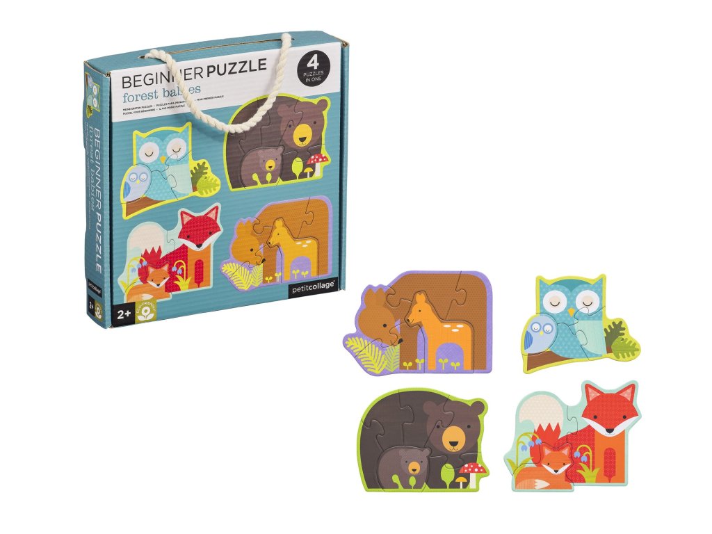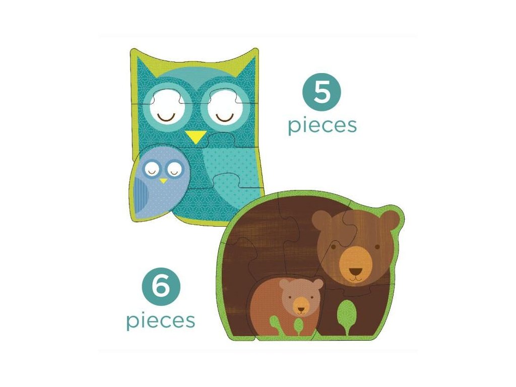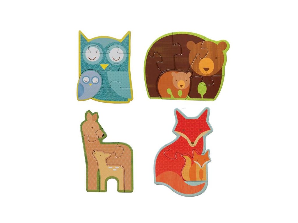 Skládačky o 3, 4, 5 a 6 kusech. Sada puzzle obsahuje 4 motivy lesních zvířátek. Vyrobeno z recyklované lepenky a potištěné rostlinnými barvami. Hlavní vlastnosti: 4 motivy lesních zvířátekVyrobeno z recyklované lepené a potištěno rostlinnými inkoustyÚložný box pro snadné uschování