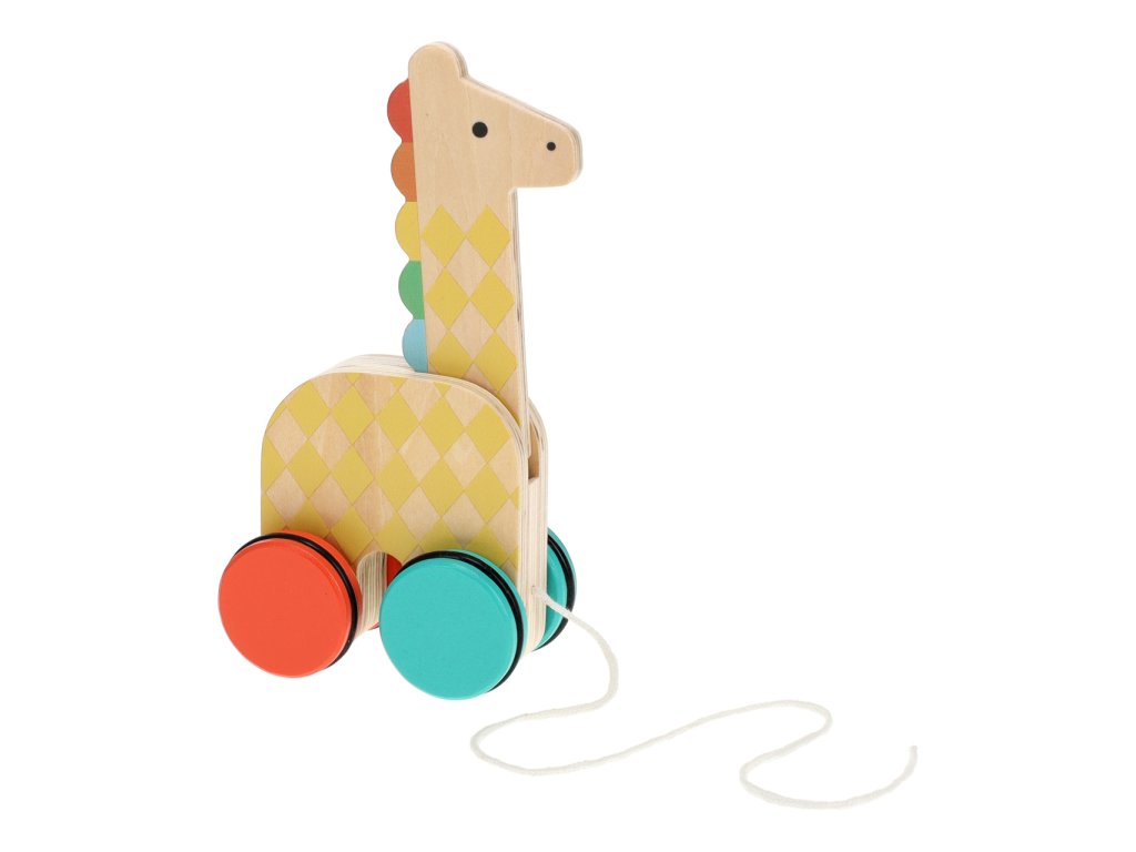 Tuto tahací žirafu na kolečkách si užijí hlavně děti, které se učí chodit. Stačí uchopit bavlněný provázek a žirafa bude při jízdě vtipně pohybovat hlavou. Veselé barvy a zářivý vzor, bude se hodit do každého pokojíčku a pomůže dětem s rozvojem hrubé motoriky. Klasická tahací hračka v moderním designu je vyrobena z FSC dřeva, vhodná od 18 měsíců. Hlavní vlastnosti: pogumovaná kolečkarozvíjí hrubou motorikuFSC dřevopotištěno netoxickými barvami na bázi vody Značka a certifikát FSC® (Forest Stewardship Council) zaručuje, že dřevo, ze kterého byl produkt vyroben, nebylo vytěženo nelegálně a pochází z lesů obhospodařovaných šetrným či přírodě blízkým způsobem, ve kterém jsou dodržovány přísné environmentální a sociální požadavky. Značka FSC® na výrobku znamená, že svým nákupem pomáháte chránit lesy a podporujete šetrné, odpovědné či přírodě blízké hospodaření, díky kterému jsou naše lesy stabilnější, zdravější, mají přirozenou druhovou skladbu a lépe odolávají negativním následkům klimatických změn.