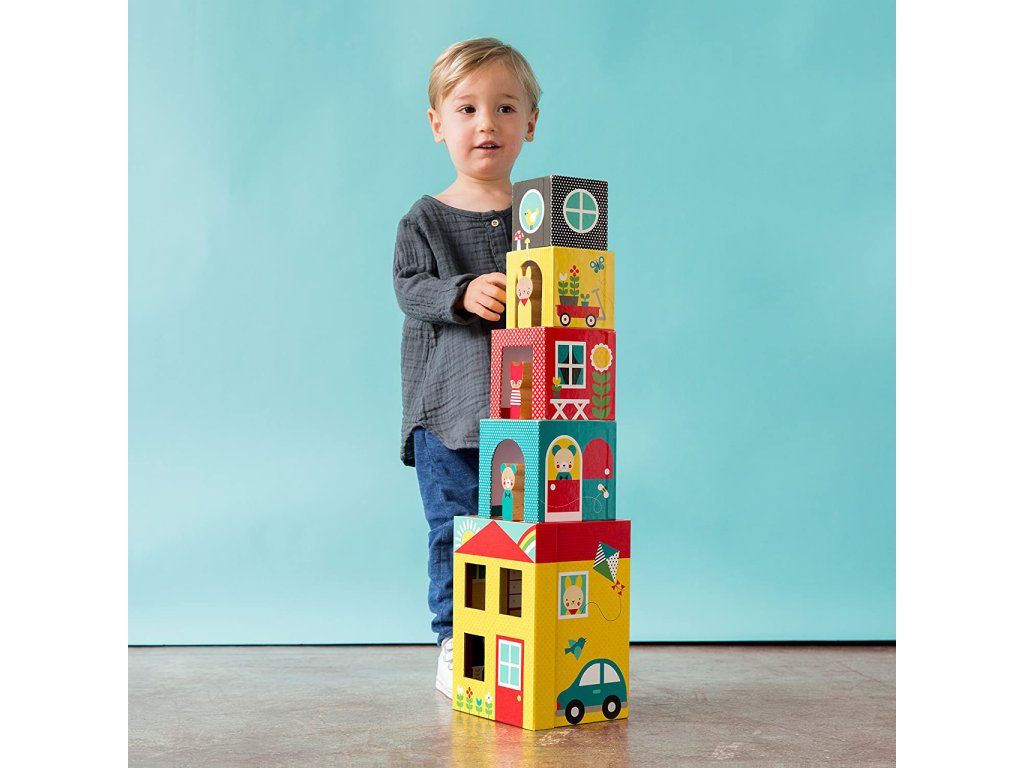 Petit Collage Věž z 1-2-3 kostek domečky s postavičkami