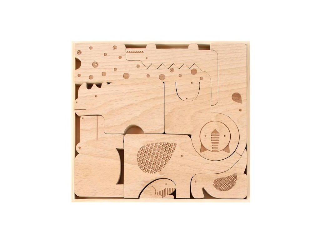 V tomto dřevěném zvířecím puzzle se kloubí moderní design a stará klasika dřevěných hraček. Toto puzzle děti nadchne v každém stádiu vývoje. Oblé a přirozené tvary ručně vyřezávaných zvířátek se budou líbit všem dětským rukám. Děti mohou trénovat skládání zvířátek na sebe nebo je mohou zkusit vložit zpět do krabičky tak, aby žádný dílek nezůstal mimo. Dle zpětné vazby zákazníků víme, že je toto puzzle i krásnou dekorací dětských pokojů. Hlavní vlastnosti: rozvíjí motoriku a představivostlehce zapamatovatelné, laserem vytvořené ornamentyvyrobeno z přírodního bukového dřeva s certifikátem FSCodpovídá normám CPSIA a ASTM Značka a certifikát FSC® (Forest Stewardship Council) zaručuje, že dřevo, ze kterého byl produkt vyroben, nebylo vytěženo nelegálně a pochází z lesů obhospodařovaných šetrným či přírodě blízkým způsobem, ve kterém jsou dodržovány přísné environmentální a sociální požadavky. Značka FSC® na výrobku znamená, že svým nákupem pomáháte chránit lesy a podporujete šetrné, odpovědné či přírodě blízké hospodaření, díky kterému jsou naše lesy stabilnější, zdravější, mají přirozenou druhovou skladbu a lépe odolávají negativním následkům klimatických změn.