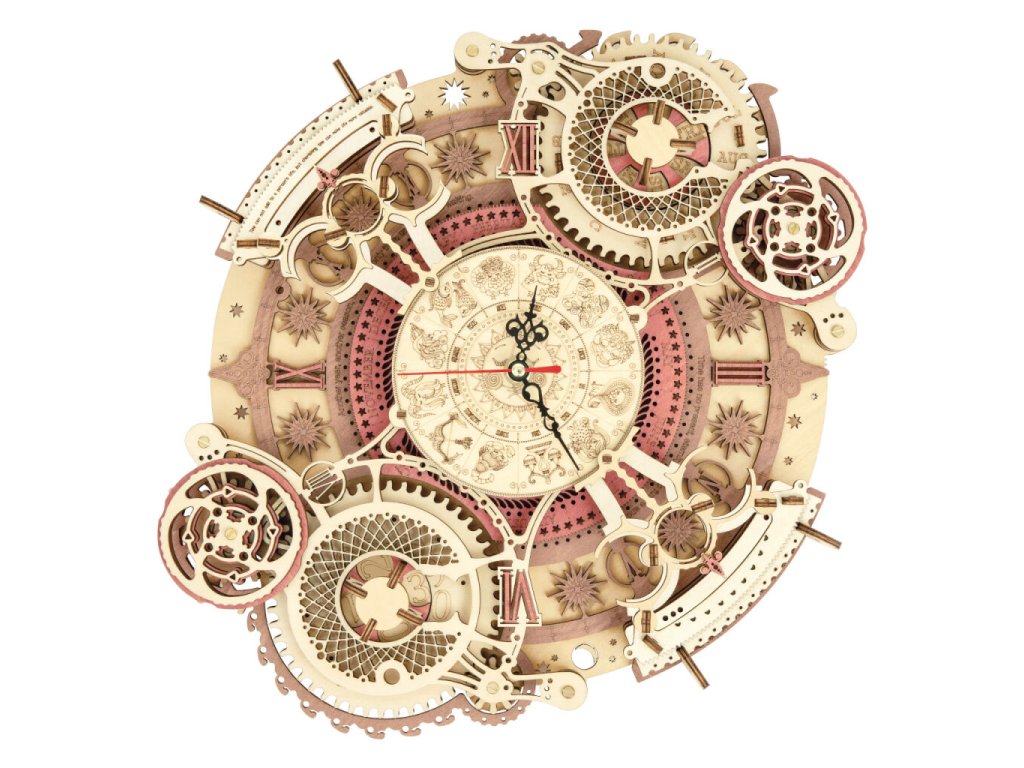 Ztrácíte se v čase? Stavebnice hodin s dekoračním kalendářem z překližky. Inspirováno klasickým filmem Stroj času, navrženo tak, aby detaily přitáhly pozornost všech nadšenců. Hodiny jsou poháněny elektricky, pomocí tužkové baterie. Kalendář slouží jako dekorace zobrazující měsíce a dny. Je obsluhován pomocí čtveřice otočných ovladačů u jednotlivých ukazatelů. Model je určen k zavěšení na zeď a dodává se s dvojicí různých závěsných háčků, s hřebíkem a s přísavkou. Jedinečný dárek pro všechny milovníky kutilství, luxusní interiérová dekorace do pokoje či kanceláře. Skládačka je dodávána v nesloženém stavu, balena v krabici. Vybaveno detailním návodem k sestavení. Hlavní vlastnosti:168 precizně vyřezaných dílkůvysoká obtížnost sestavenínapájeno AA bateriídekorační kalendář zobrazuje:měsíc v roceden v měsíciden v týdnu