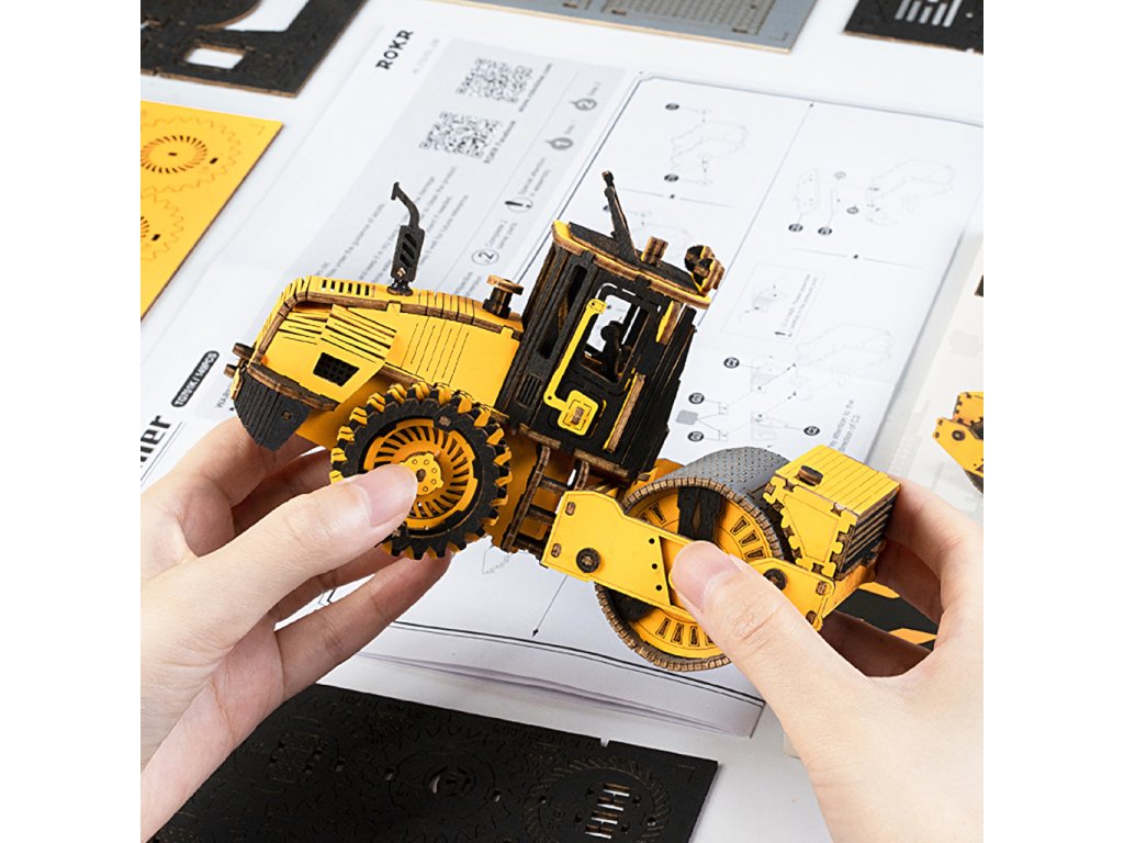 RoboTime 3D dřevěná mechanická skládačka Silniční válec