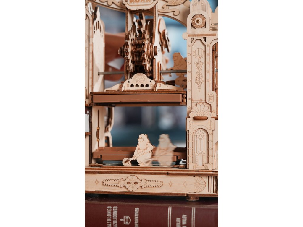Vítejte v tiskovém závodě Little Bear kde špetka inkoustu udělá z Vašich nápadů divy! Zatáhněte za páku a parta pilných tlapek se vrhne do akce! Aby medvědí kolegové při práci lépe viděli, je továrna opatřena o LED světla. Klasický tiskařský lis využívá pohyblivý princip tisku, jenž umožňuje libovolně upravovat a bez námahy tisknout zprávy a karty. Černá tisková kazeta, do níž se přidává inkoust na vodní bázi, je znovu použitelná - hraní a tisk s medvídky je tudíž bez mezí! Vosk není součástí balení (můžete např. použít obyčejné svíčky, voskovky, včelí vosk či jiný podobný materiál). Hlavní vlastnosti: 303 precizně vyřezávaných dílůdoba sestavení cca 5 hodindřevo je přírodní a ekologicky šetrnéLED osvětlenívhodné od 14 let