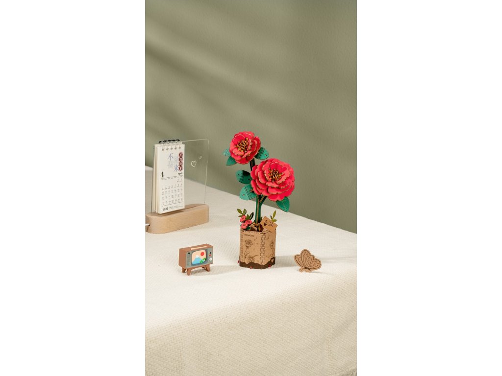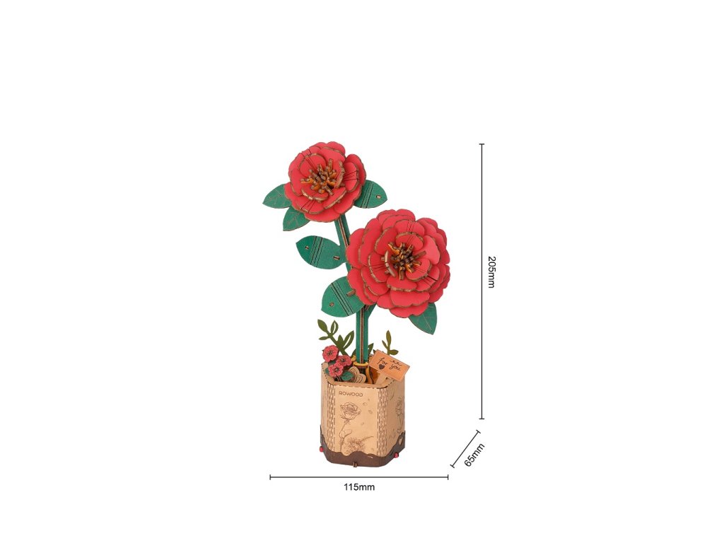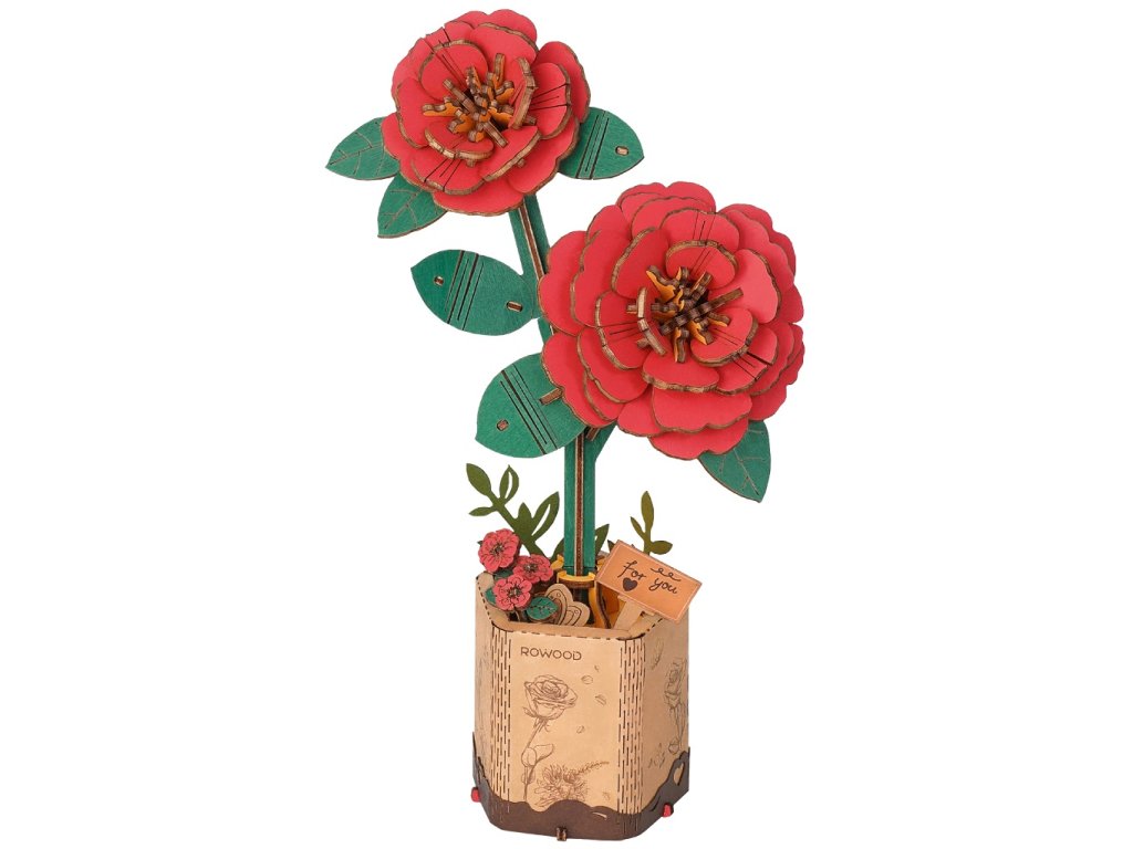 RoboTime 3D dřevěná skládačka Červená kamélie