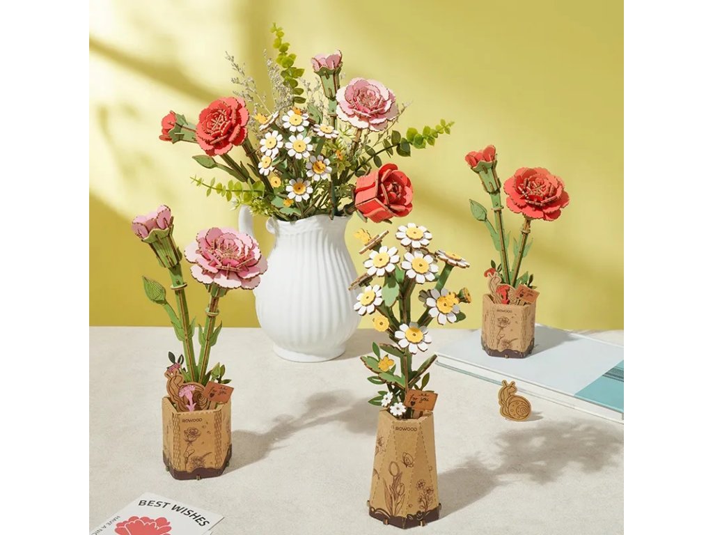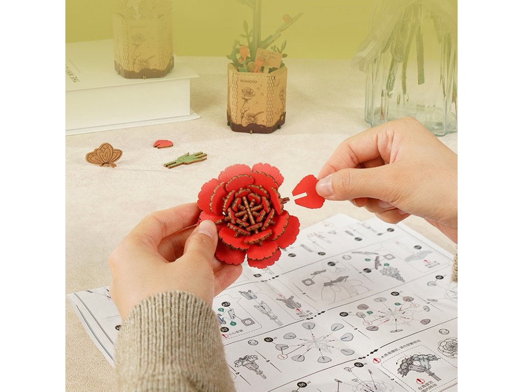 RoboTime 3D dřevěná skládačka Červený karafiát