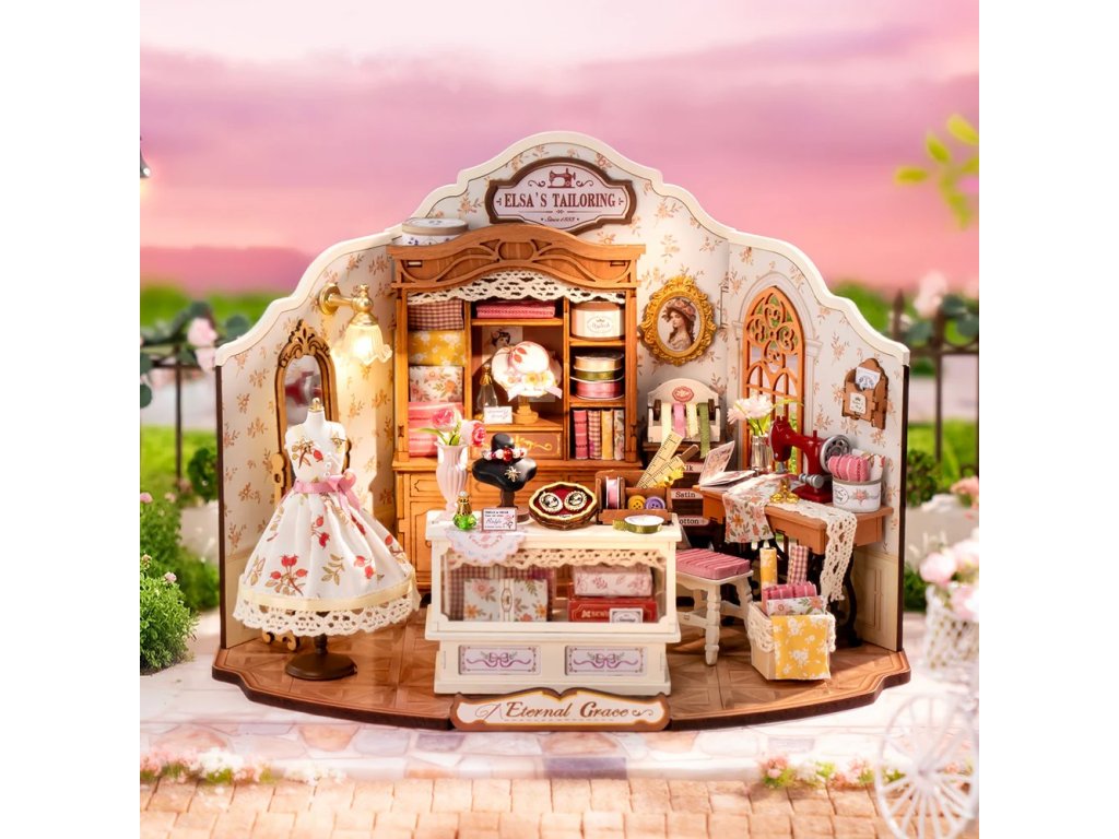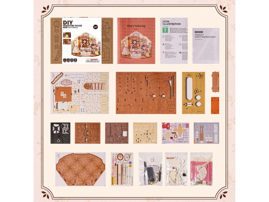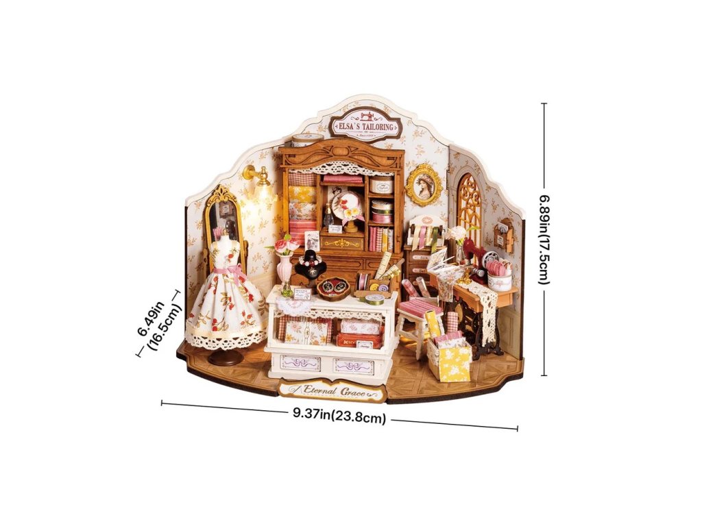 RoboTime 3D dřevěná skládačka Miniatura domečku Elsino krejčovství