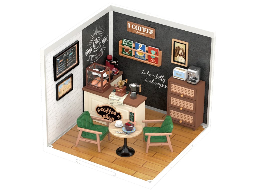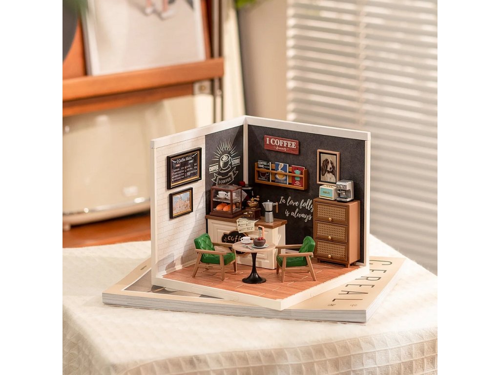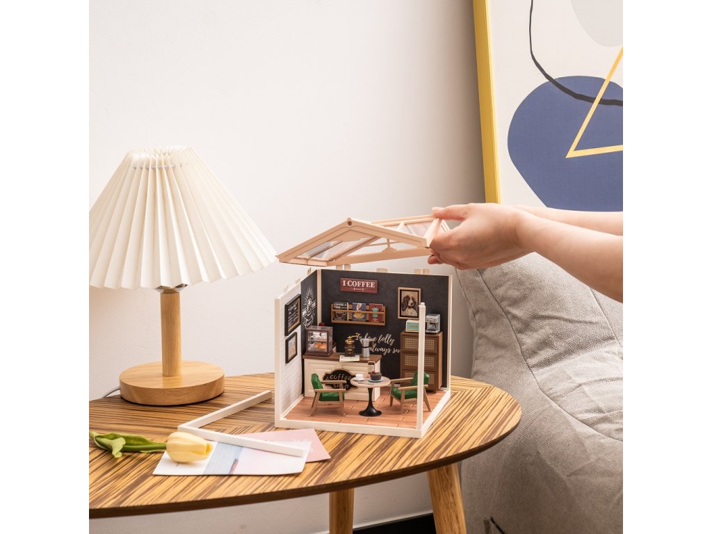 RoboTime 3D dřevěná skládačka Miniatura domečku Kavárna inspirací