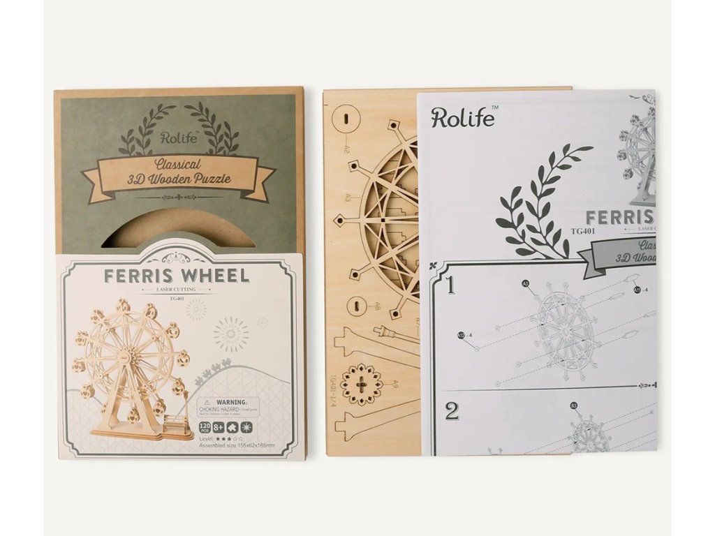 Detailní model známého kolotoče. Patří do řady skládaček, které jsou určeny k vystavení, nejsou interaktivní a nemají žádné pohyblivé díly. Skládačka je dodávána v nesloženém stavu, balena v krabici. Vybaveno detailním návodem k sestavení. Hlavní vlastnosti:120 precizně vyřezaných dílkůnízká obtížnost sestavení