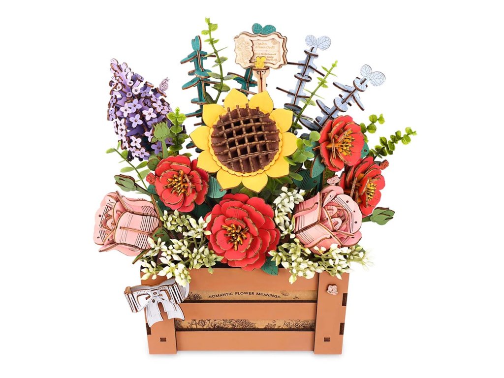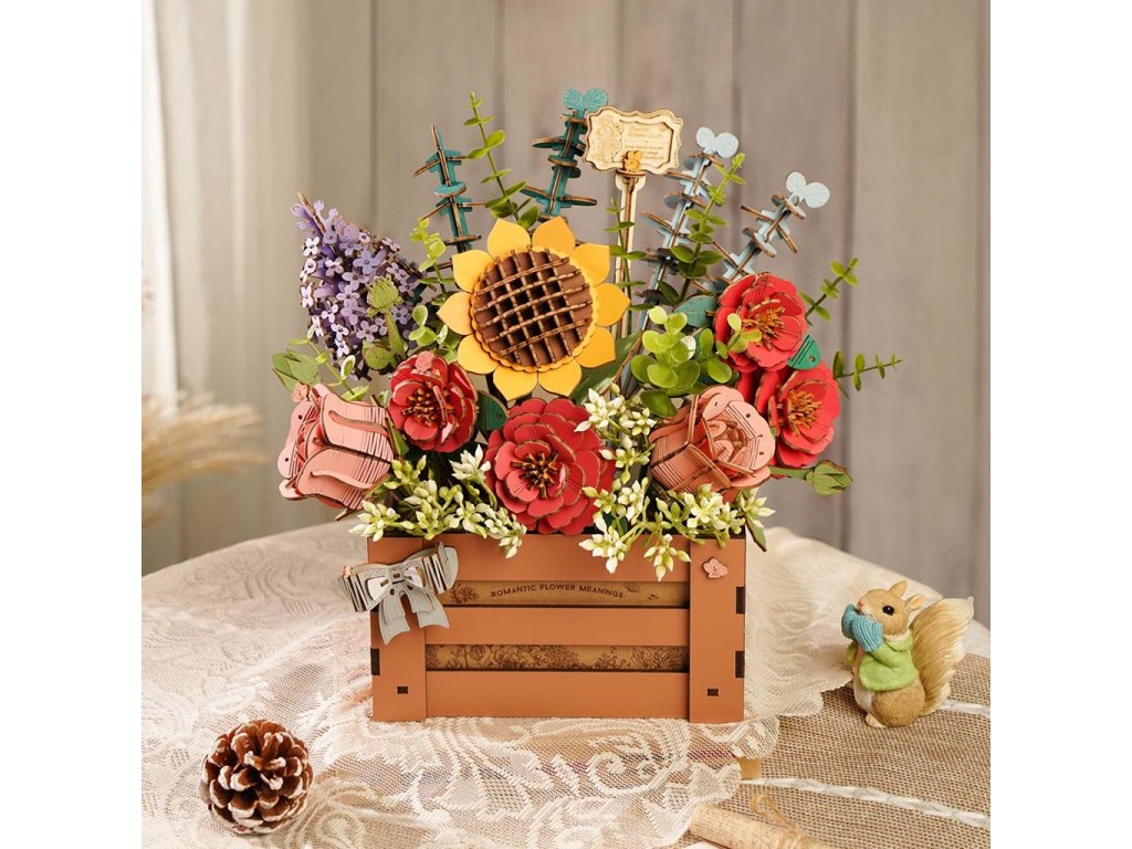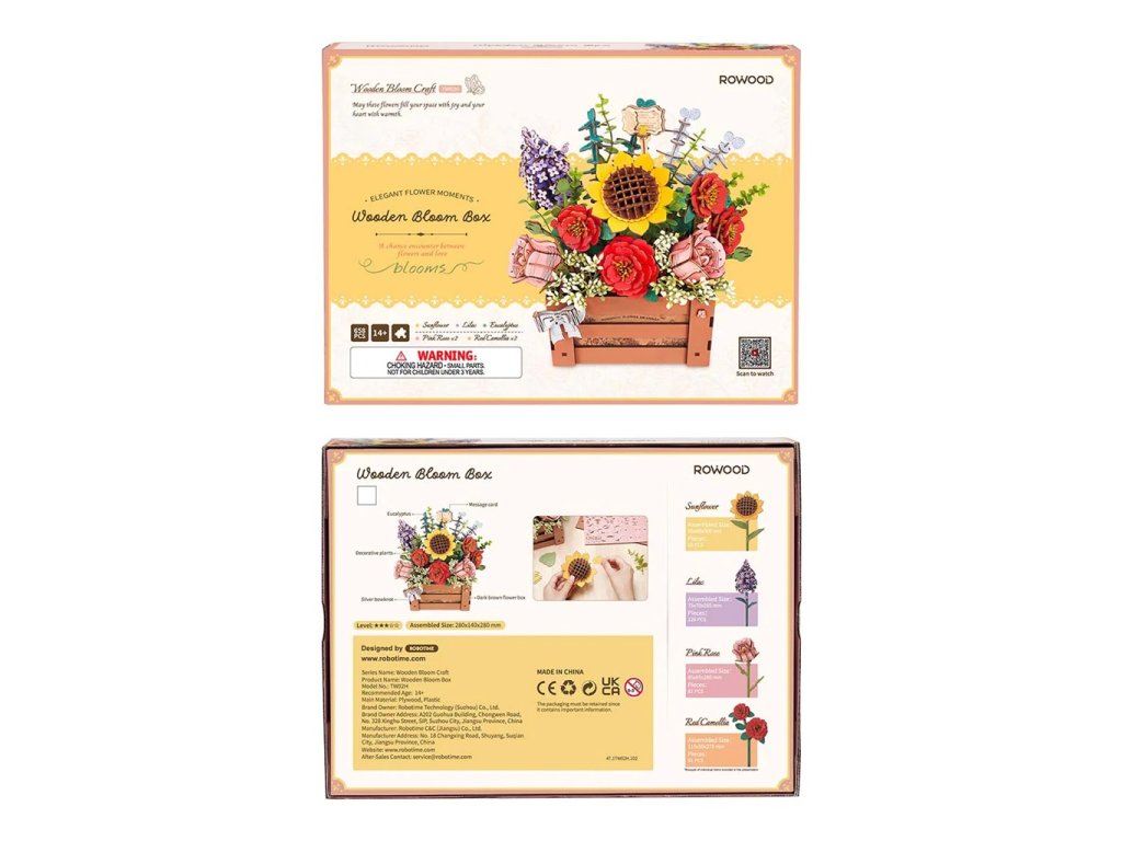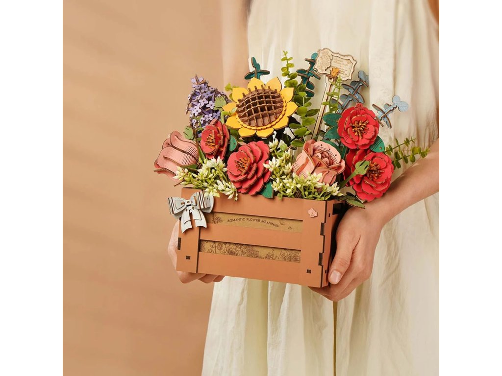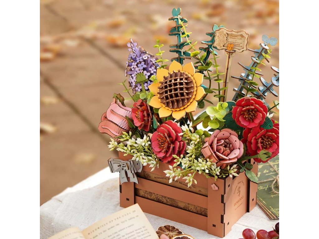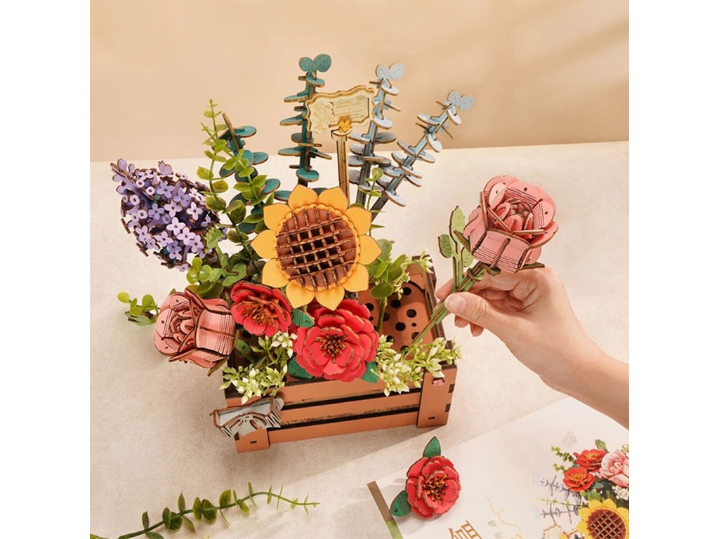 RoboTime 3D dřevěná skládačka Truhlík s květinami