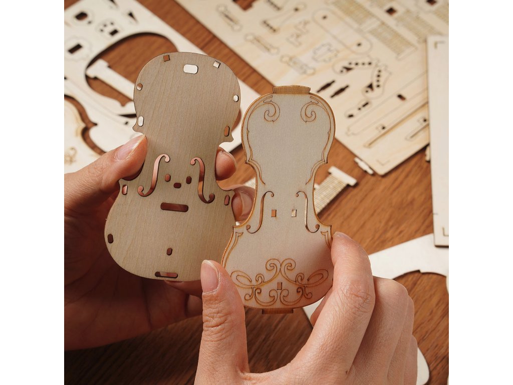 Detailní model hudebního nástroje. Patří do řady skládaček, které jsou určeny k vystavení, nejsou interaktivní a nemají žádné pohyblivé díly. Skládačka je dodávána v nesloženém stavu, balena v kartonové obálce. Vybaveno detailním návodem k sestavení. Hlavní vlastnosti:58 precizně vyřezaných dílkůnízká obtížnost sestavení