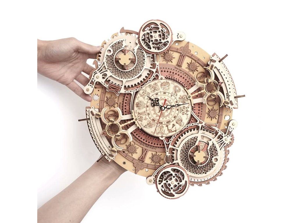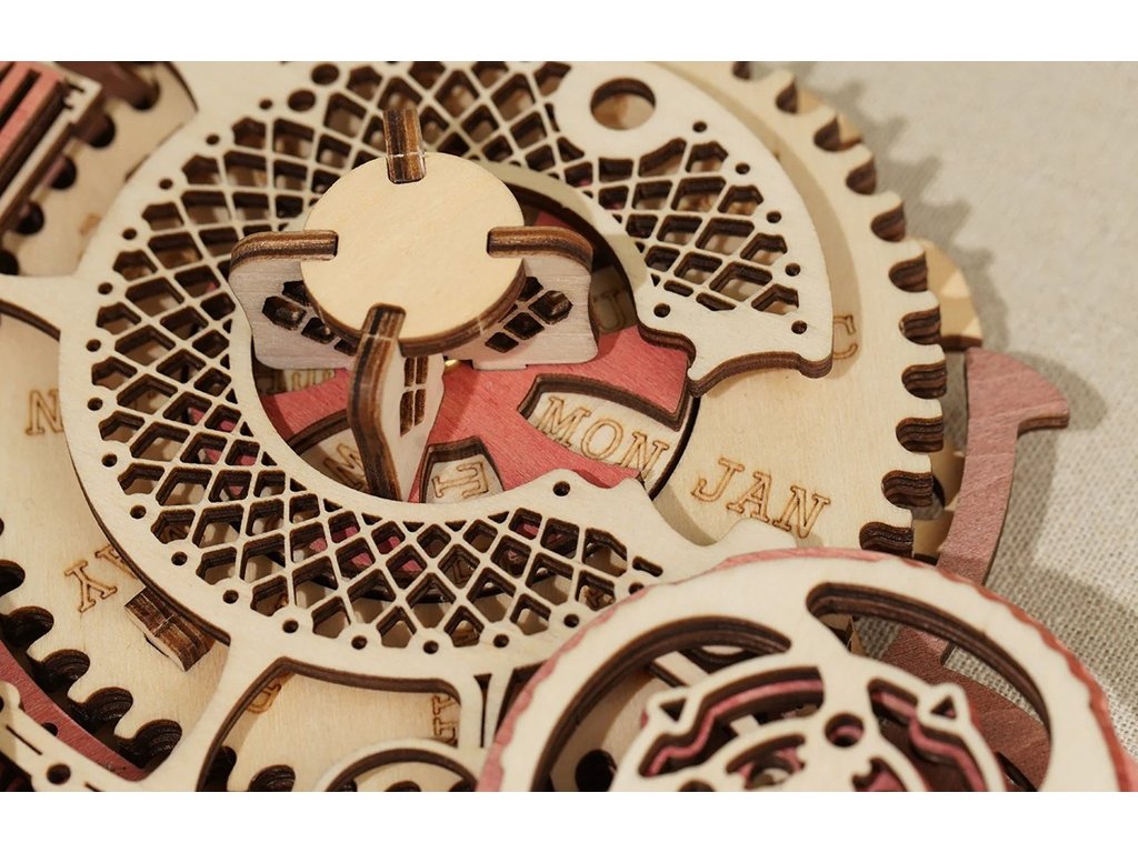 RoboTime 3D dřevěné mechanické puzzle Hodiny s kalendářem
