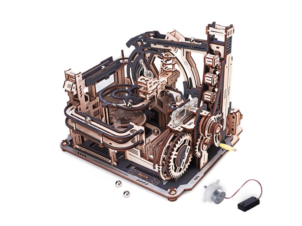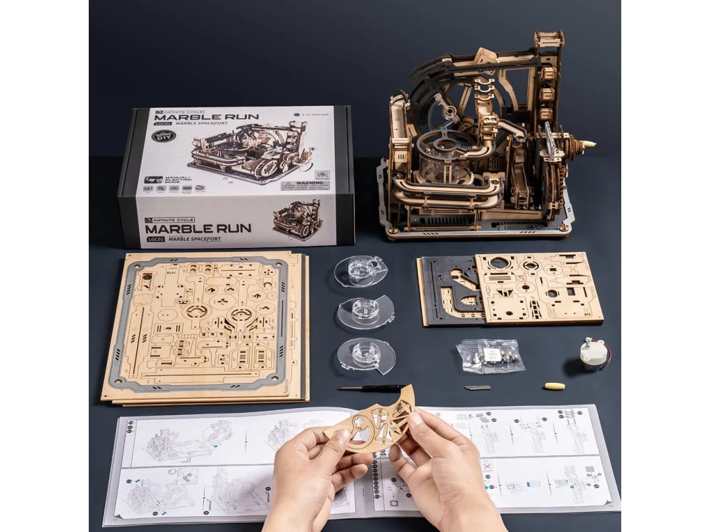 Z objevování neznáma se zrodil nápad pro sestrojení tohoto kosmodromu. Kosmodrom vypadá, jako by byl opravdu sestavený pro cestu do Vesmíru. Nevídaná interaktivní zábava a vizuální zážitek. Kosmodrom je poháněn manuálně i elektricky pomocí USB-C kabelu, který je ale potřeba dokoupit. Není součástí balení. Připravte se na zcela nečekanou vizuální jízdu. Jedinečnost této kuličkové dráhy spočívá v jejím vylepšeném designu se dvěma jízdními režimy (manuální, elektrický) a ve složitých mechanických konstrukcích, kterými je 6 objízdných mechanismů a 5 drah. Královna nabídky kuličkových drah Robotime nabízí mimořádné množství překážek. Skládačky kuličkových drah Robotime nabízejí jinde nevídané podrobnosti a variabilitu. Každá se může pyšnit originálními funkčními detaily a roztodivnými překážkami, které často nápaditě změní dráhu kuličky, a přinášejí tak výjimečnou zábavu. Mechanika je poháněna ručním/elektrickým pohonem. Skládačka je dodávána v nesloženém stavu, balena v krabici. Vybaveno detailním návodem k sestavení.Pokud chcete vytvořit něco opravdu unikátního, můžete dokoupit také Robotime 3D skládačku kuličkové dráhy Město překážek (LGA01) a (LG01) příslušenství k propojení s touto Robotime 3D skládačkou kuličkové dráhy Kosmodrom. Spojením těchto dvou kuličkových drah Vám vznikne unikátní vesmírný stroj. Hlavní vlastnosti: dva režimy jízdy manuální/elektrickýdosahuje 70 ot./minmontáž s přesnými díly bez použití lepidlaideální dárek nebo dekorace