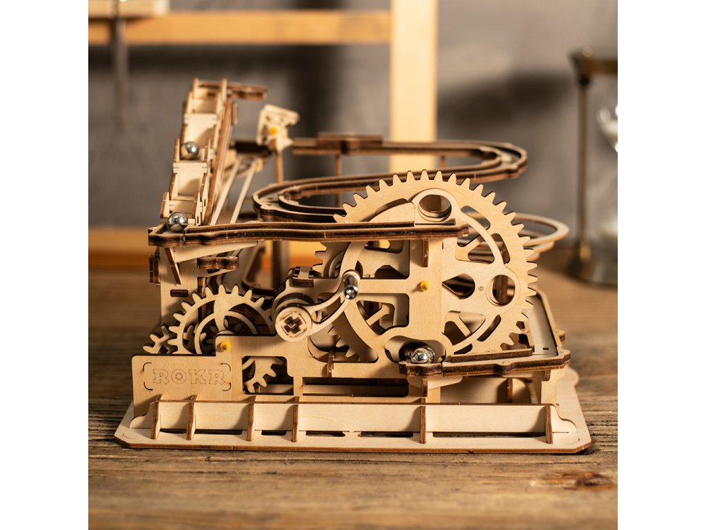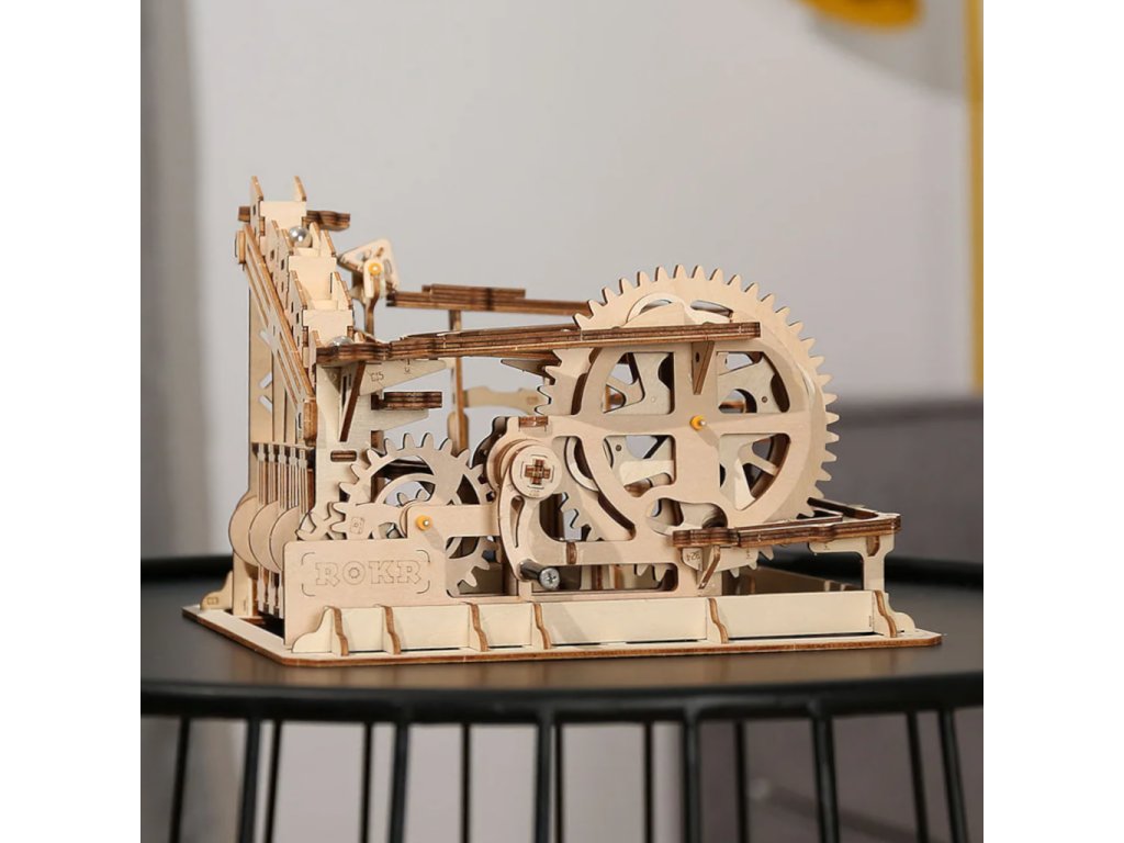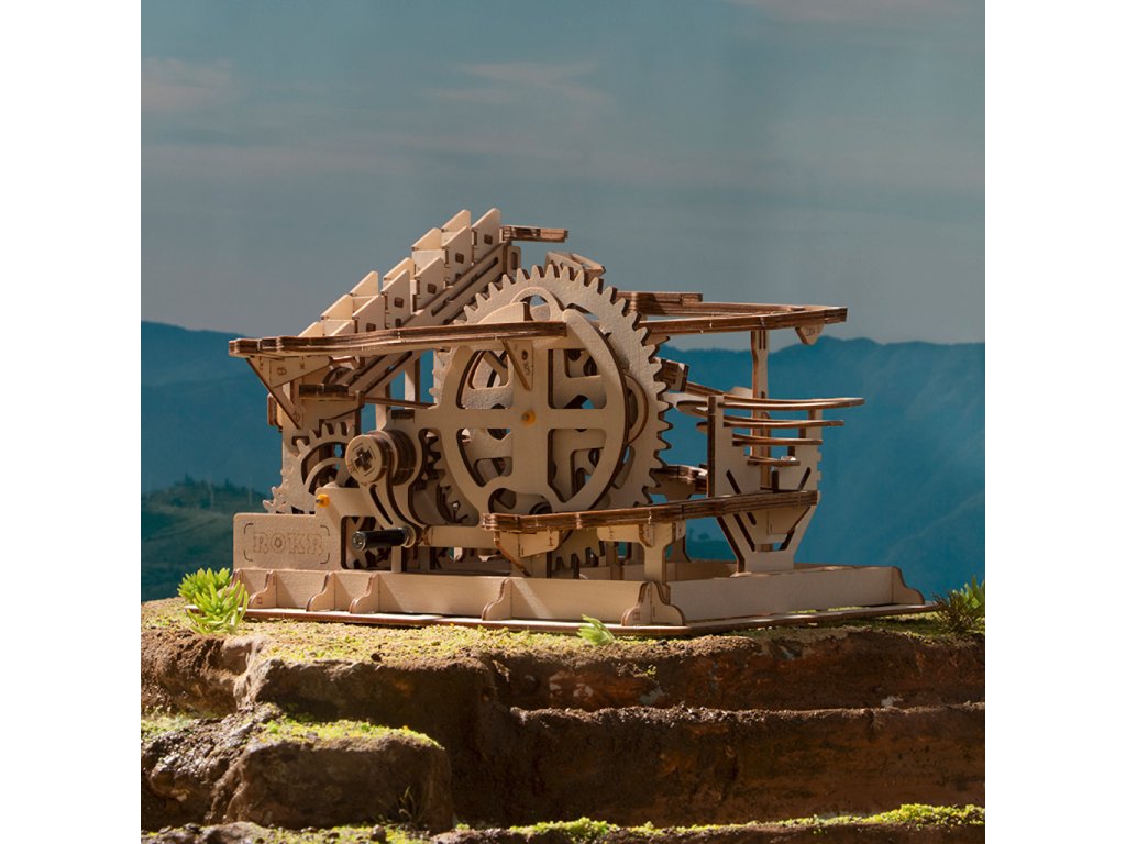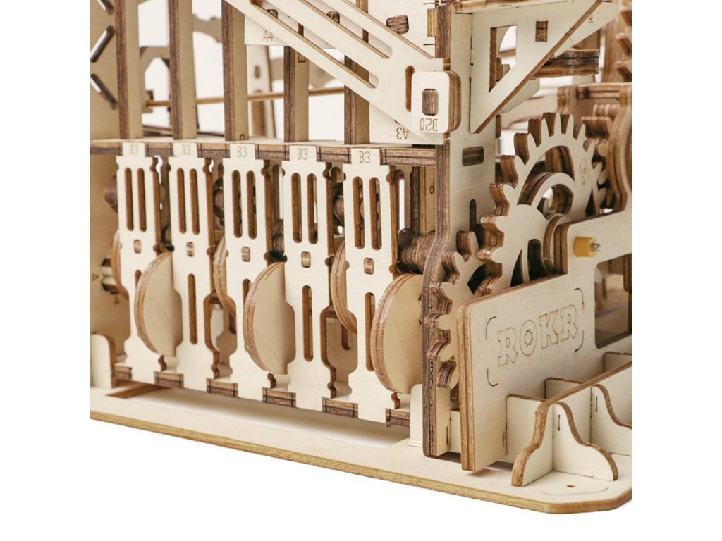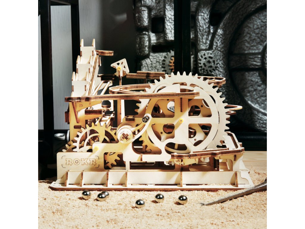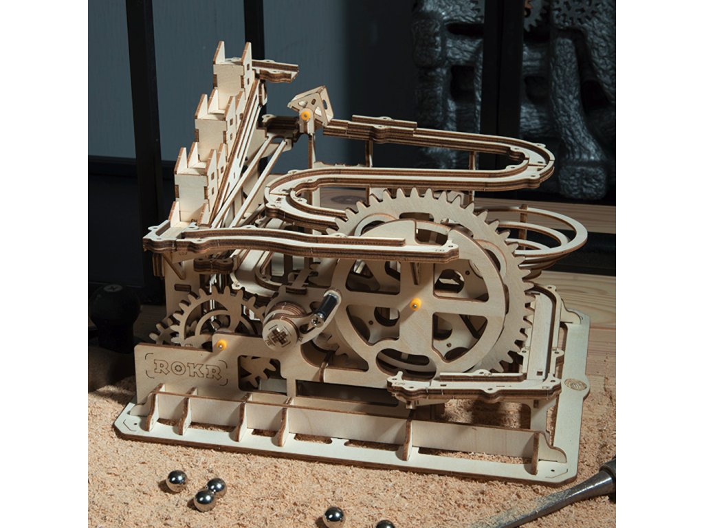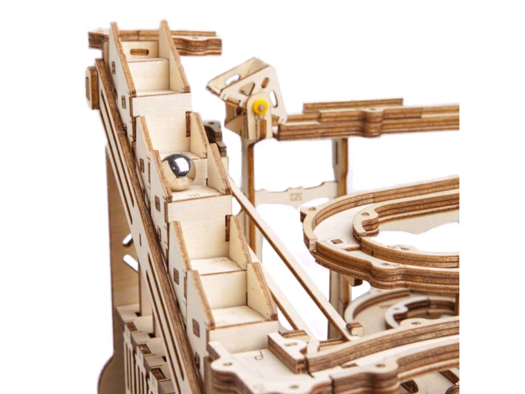 Kuličková dráha se schodišťovým výtahem a velkou spirálou. Skládačky kuličkových drah Robotime nabízejí jinde nevídané podrobnosti a variabilitu. Každá se může pyšnit originálními funkčními detaily a roztodivnými překážkami, které často nápaditě změní dráhu kuličky, a přinášejí tak výjimečnou zábavu. Mechanika je poháněna ručním pohonem, otáčením klikou, kterým jsou také vynášeny a na cestu pravidelně spouštěny kuličky. Skládačka je dodávána v nesloženém stavu, balena v krabici. Vybaveno detailním návodem k sestavení. Hlavní vlastnosti:skládačka dráhy a 10 kuliček233 precizně vyřezaných dílkůstřední obtížnost sestavení
