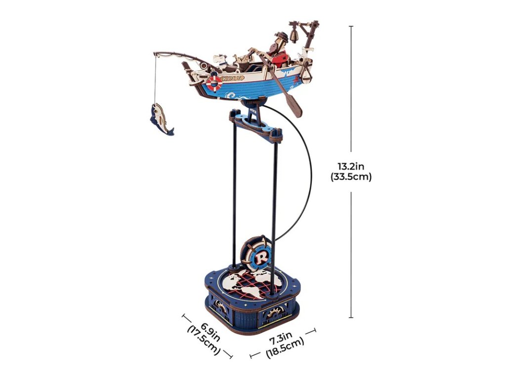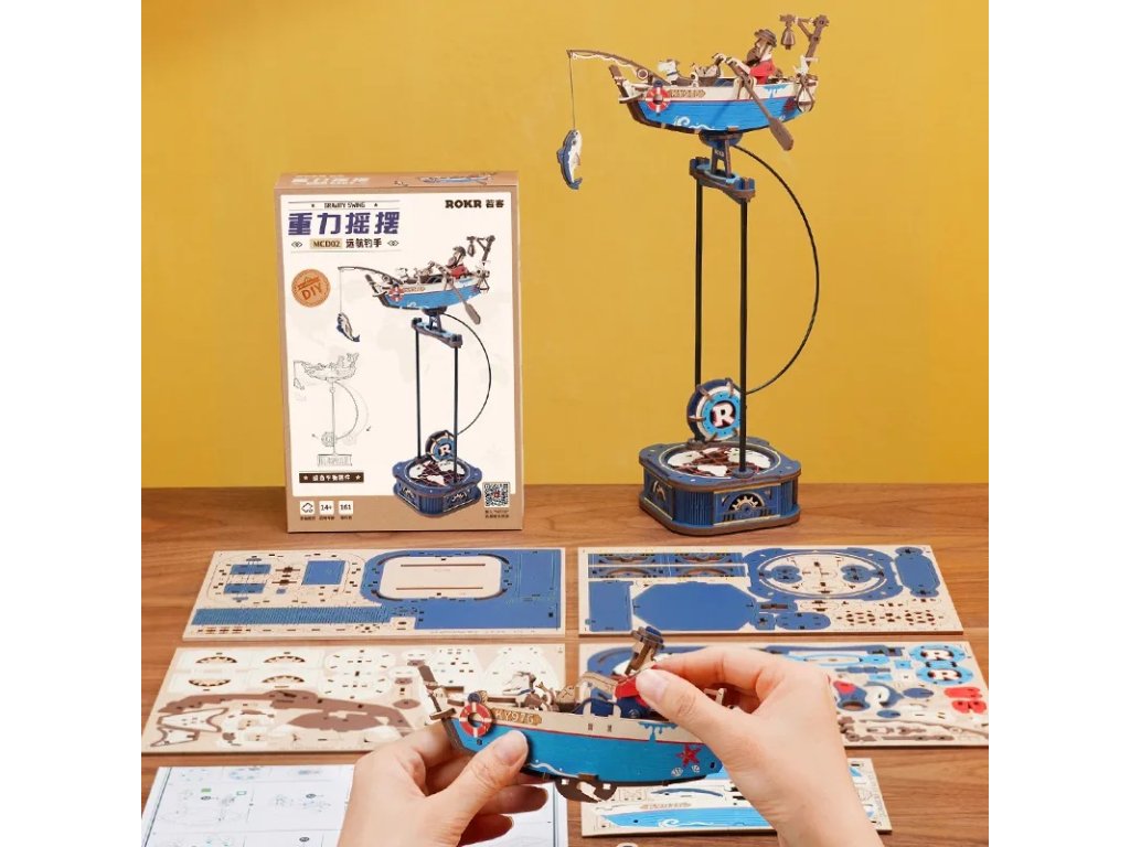 Vydejte se na otevřené moře na palubě rybářské bárky. Pozorujte rytmicky veslujícího rybáře, který doprovázen svým věrným psím kamarádem se snaží dopravit svůj úlovek na pevninu. Loďku uvedete do pohybu jemným zatlačením na závaží kyvadla, které zahájí konzistentní kývavý pohyb, který napodobuje houpání lodi na otevřeném moři a rozpohybuje vesla. Rybářská loď s kyvadlem je součástí řady Gravity Swing, která spojuje zábavu se vzděláváním a probouzí zvědavost všech věkových kategorií. Tyto chytré modely s kyvadlovým mechanismem umožňují lidem objevovat základní principy fyziky hravou formou. Pojmy jako gravitace, pohyb, rovnováha či přeměna potenciální a kinetické energie se stávají nejen pochopitelnými, ale i zábavnými. Věda se mění v dobrodružství, které rozvíjí kreativitu i praktické dovednosti. 3D mechanická skládačka je skvělý způsob, jak si užít kreativní a edukativní hraní a zároveň vytvořit nádherný model, který se může stát netradičním dárkem či ozdobou interiéru. Skládání podporuje rozvoj jemné motoriky, prostorového myšlení a trpělivosti. Je to možnost, jak kombinovat zábavu se vzděláváním. Všechny přesně vyřezané dílky do sebe lehce zapadnou bez použití lepidla či nástrojů, aby výsledek byl stabilní a odolný. Skládačka je dodávána v nesloženém stavu, zabalená v krabici s podrobným návodem k sestavení. Hlavní vlastnosti: 161 dílkůdoba skládání 1,5 hodstřední obtížnost sestaveníkyvadlový pohonsestavení bez použití lepidla a nástrojůvýjimečný vzhledvhodné pro děti i dospělérozvíjí logické a motorické dovednostipodporuje trpělivost dětíideální jako dárek nebo jedinečná dekoracesoučást řady Gravity Swing