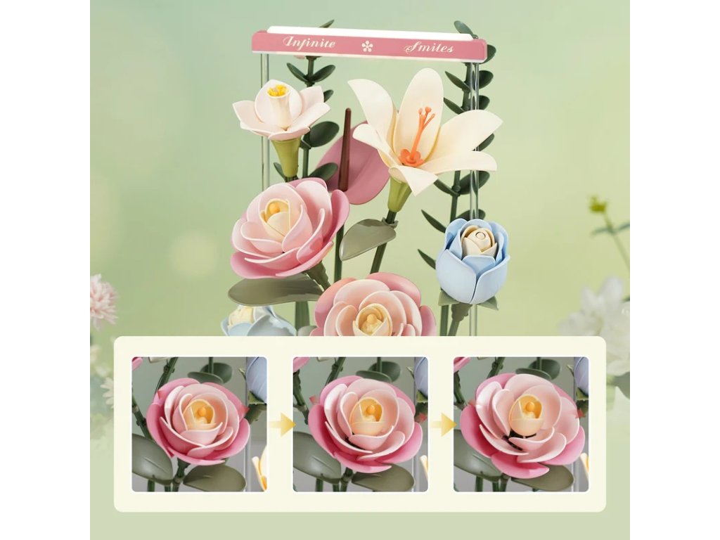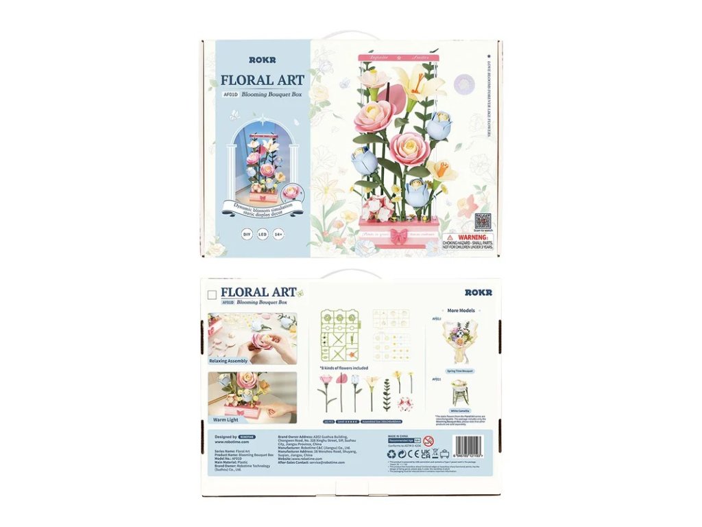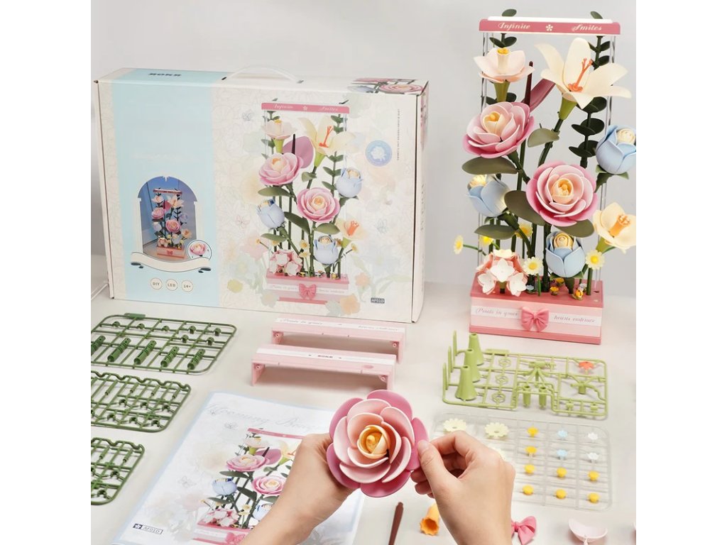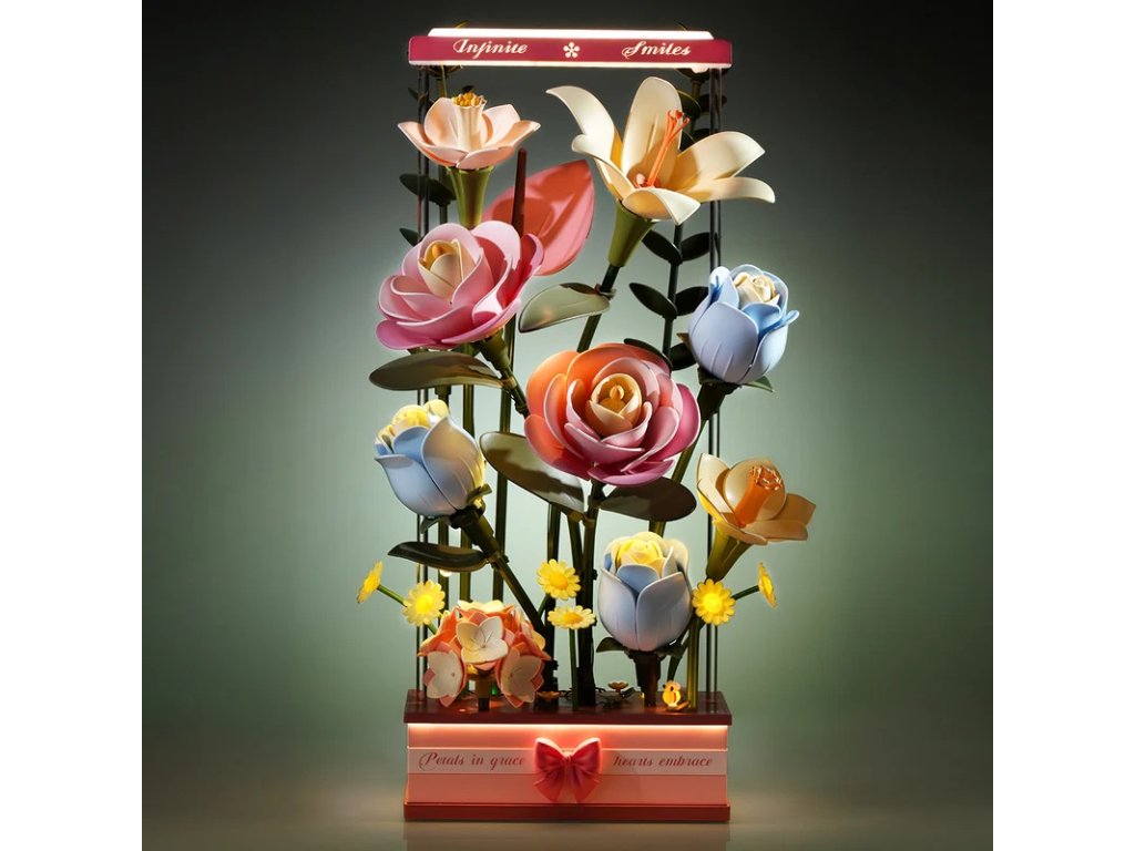 Vytvořte nadčasovou dekoraci nebo netradiční dárek pro všechny milovníky květin. Kytice v jemných pastelových barvách se skládá z kamélie, lilie, narcisu, modré růže, hortenzie, kopretiny, anturie a eukalyptu a je inspirována dílem malíře Giorgia Morandiho. Květinový box spojuje umění, techniku a přírodní krásu v harmonickém celku. Realistické květy se díky přesnému, ultra pomalému motoru se 3 otáčkami za minutu ladně otevírají a zavírají, čímž připomínají okouzlující časosběrnou scénu. Kouzlo aranžmá umocňuje jemné osvětlení pomocí šesti různých světelných zdrojů, včetně optických vláken umístěných uvnitř květů a LED světla. Užijte si naplno požitek z tohoto květinového aranžmá pomocí 3 režimů provozu. Můžete zapnout jen osvětlení (režim 1), osvětlení a rozkvétání zároveň (režim 2) nebo se potěšit pouze otevíráním a zavíráním květů (režim 3). Osvětlení i rozkvétání lze samozřejmě ponechat vypnuté, případně je možné nastavit střídání všech tří režimů automaticky. 3D skládačka je skvělý způsob, jak si užít kreativní a edukativní hraní a zároveň vytvořit nádherný model, který se může stát netradičním dárkem či ozdobou interiéru. Skládání 3D skládačky podporuje rozvoj jemné motoriky, prostorového myšlení a trpělivosti. Je to možnost, jak kombinovat zábavu se vzděláváním. Všechny přesné dílky do sebe lehce zapadnou, aby výsledek byl stabilní a odolný. Skládačka je dodávána v nesloženém stavu, zabalená v krabici s podrobným návodem k sestavení. K napájení slouží USB-C kabel, který je součástí balení. Obsah balení: kamélie, lilie, narcis modrá růže, hortenzie, kopretina, anturie a eukalyptus. Hlavní vlastnosti: 263 dílkůdoba skládání 4 hodvysoká obtížnost sestavení bez použití lepidlavýjimečný a realistický vzhledrozvíjí logické a motorické dovednostiideální jako dárek nebo jedinečná dekoraces funkcí osvětlení a pohybu3 režimy provozuultra pomalý motornapájení pomocí USB-C kabelu (je součástí balení)