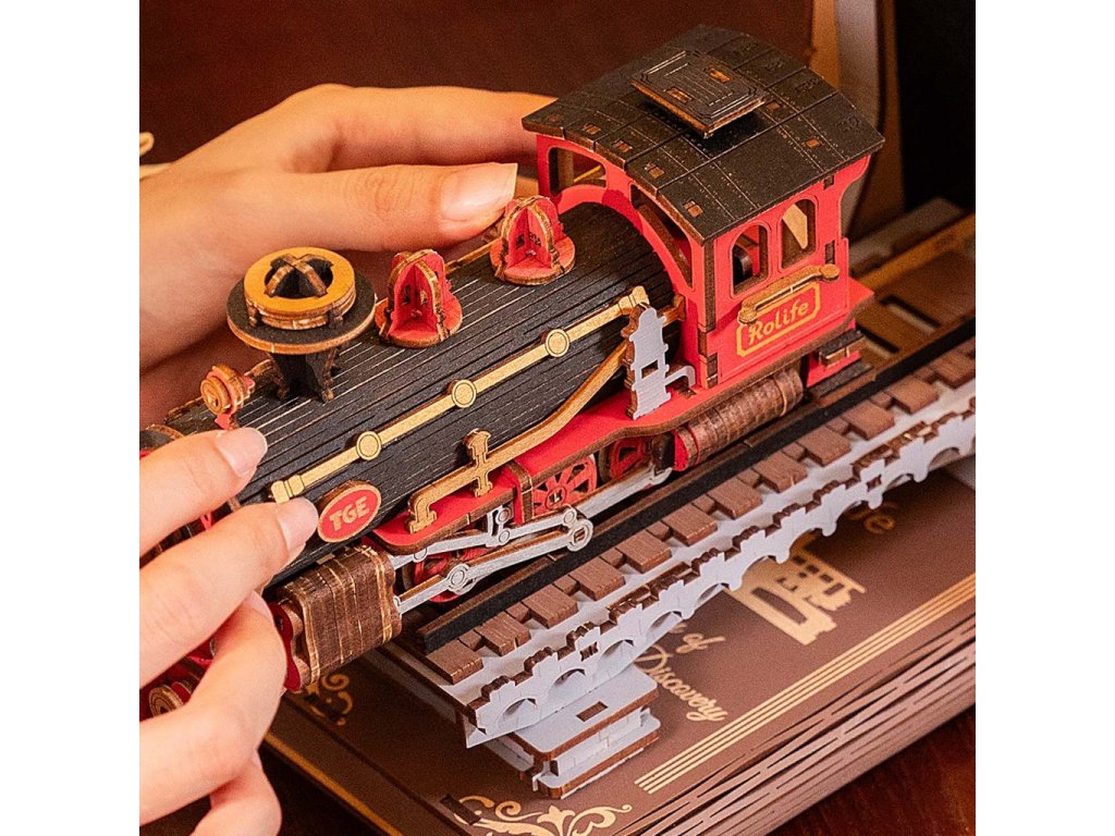 Vydejte se na cestu do minulosti a užijte si cestování historickým parním vlakem ve vintage stylu, který je propracovaný do nejmenších detailů. Vytvořte si příjemné zákoutí s knihami, které přinese do Vašeho domova atmosféru starých dobrých časů. Pozvěte svou rodinu nebo přátele a užijte si zábavné tvoření bez nutnosti použití lepidla nebo nástrojů. Všechny díly skládačky jsou přesně vyřezané, očíslované a lehce do sebe zapadnou, aby výsledek byl stabilní a odolný. Dodáváno s podrobným návodem k sestavení. Knihy zobrazené na fotografiích nejsou součástí balení. Hlavní vlastnosti: 313 precizně vyřezaných dílkůdoba sestavení 2 hodstřední obtížnost sestavenísnadná montáž bez použití lepidla a nástrojůrozvíjí logické a motorické dovednostipodporuje trpělivost dětíideální jako dárek nebo jedinečná dekoracepodrobný návod k sestavení je součástí baleníknihy nejsou součástí balení