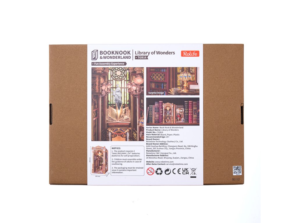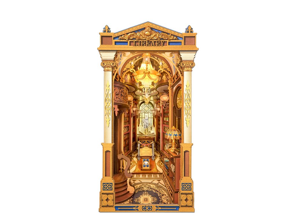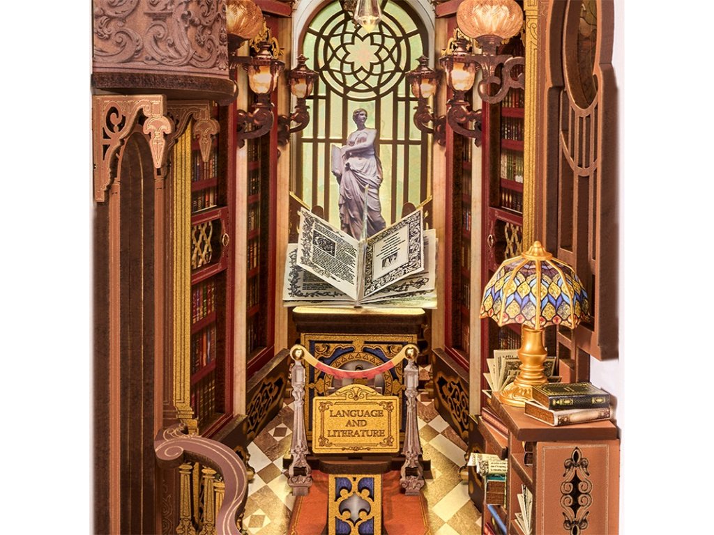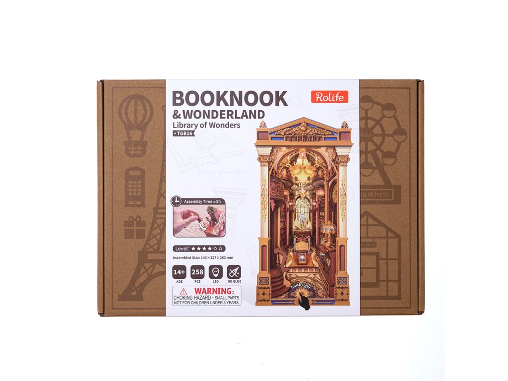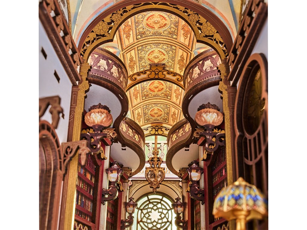 Zažijte kouzlo Knihovny divů, jedinečného knižního koutku, který vás přenese do světa goticko-viktoriánské elegance. Tento detailně propracovaný model kombinuje viktoriánskou architekturu, římské sloupy, klasické sochy, vzácné artefakty a řady starožitných knih, čímž vytváří dojem tajemného archivu bohů.Impozantní klenutá brána vás zve do prostoru plného nejen knih, ale i uměleckých detailů a bohaté výzdoby. Pod vysokým, zlatem zdobeným klenutým stropem se tyčí římské sloupy, zatímco červené dřevěné knihovny zaplňují každý kout. Balkon s výhledem na schodiště se zdobeným zábradlím je osvětlen svítícím lustrem a teplými závěsnými světly, která dodávají scéně útulnou atmosféru. Na vzdáleném konci haly se nacházejí klenutá okna s jemnou kružbou a uprostřed prostoru stojí mahagonový pult s otevřenou knihou plnou kaligrafie. Čtenářský koutek je zakončen střechou ve viktoriánském stylu a bočními panely inspirovanými pevnou knižní vazbou, které plynule navazují na okolní knihovny. Knihovna divů je ideální dekorací pro milovníky knih, historie a kreativního tvoření - okouzlující detail, který promění každou knihovnu v malé umělecké dílo. 3D skládačka je skvělý způsob, jak si užít kreativní a edukativní hraní a zároveň vytvořit nádherný model, který se může stát netradičním dárkem či ozdobou interiéru. Skládání 3D skládačky podporuje rozvoj jemné motoriky, prostorového myšlení a trpělivosti. Je to možnost, jak kombinovat zábavu se vzděláváním. Všechny přesně vyřezané dílky do sebe lehce zapadnou bez použití lepidla či nástrojů, aby výsledek byl stabilní a odolný. Skládačka je dodávána v nesloženém stavu, zabalená v krabici s podrobným návodem k sestavení. K napájení slouží 2x AAA /LR03/AM4 1,5 V (nejsou součástí balení). Hlavní vlastnosti: 258 dílkůdoba skládání 5 hodinvysoká obtížnost sestavení LED osvětlenísestavení bez použití lepidla a nástrojů výjimečný vzhledvhodné pro děti i dospělérozvíjí logické a motorické dovednostipodporuje trpělivost dětíideální dárek nebo jedinečná dekoracenapájení pomocí 2 baterií AAA /LR03/AM4 1,5 V (nejsou součástí balení)
