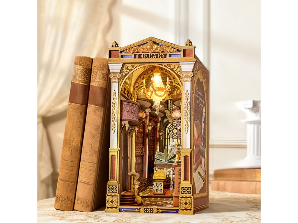 RoboTime 3D skládačka Zarážka na knihy Miniatura domečku Knihovna divů
