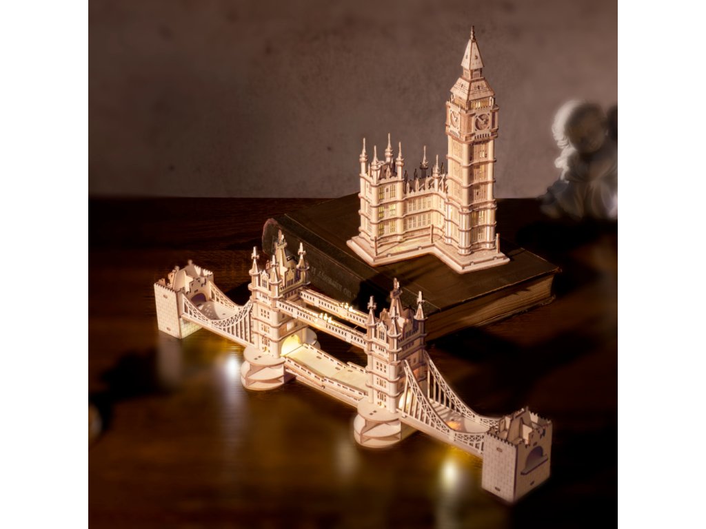Poznejte Londýn prostřednictvím stavebnic jeho nejikoničtějších architektonických dominant. Atraktivně osvětlené miniatury hravě přenesou atmosféru nočního života evropské metropole do Vašeho pokoje. Nechejte se unést jejich detaily a dovolte jim prozářit Vaši vitrínu, či polici!Stavba obnáší pouze sestavování dílů vyřezaných z překližky a snadnou montáž předem připravené sady LED osvětlení. To je napájeno knoflíkovými bateriemi (3×LR44), které jsou již součástí balení. Dodáváno v kartonové krabičce s detailním návodem k sestavení. Hlavní vlastnosti: 220 precizně vyřezaných dílůstřední obtížnost sestaveníLED osvětlení (3×LR44 baterie nejsou součástí balení)