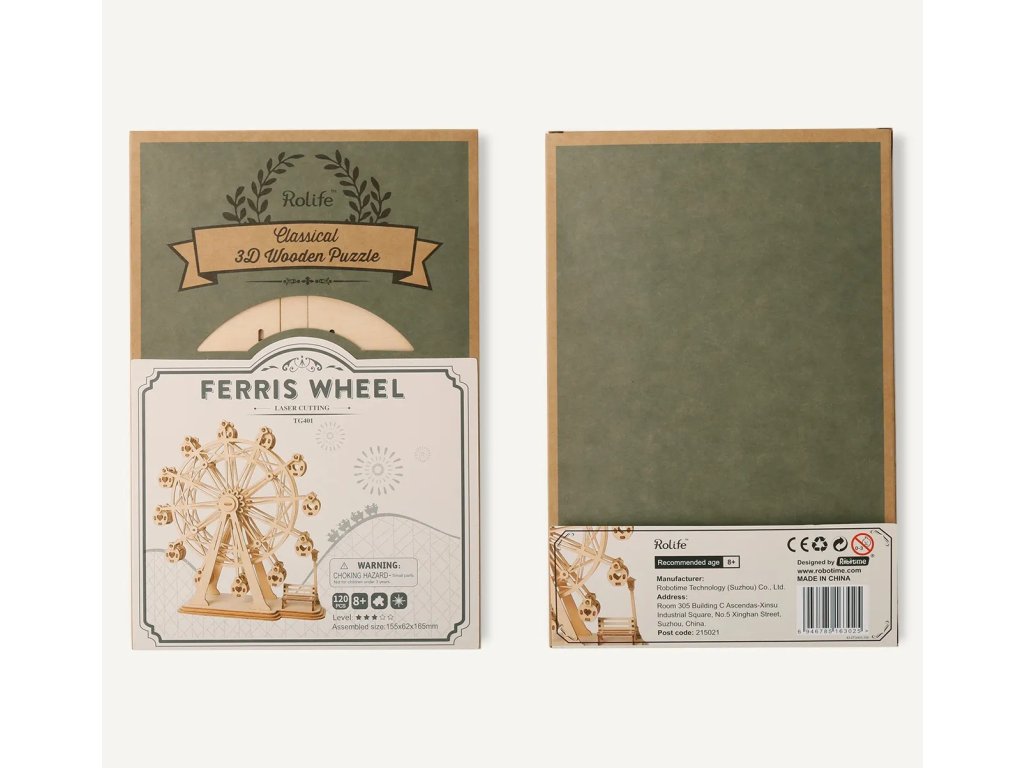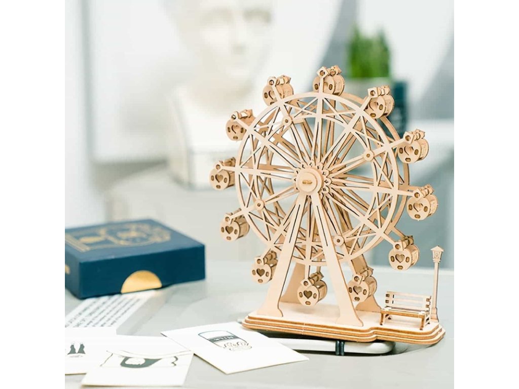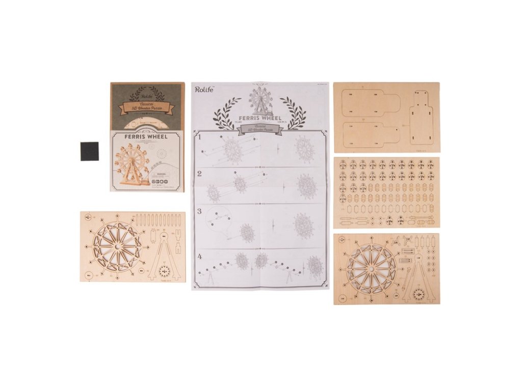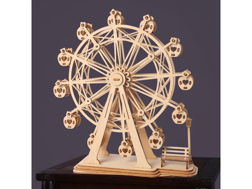 Detailní model známého kolotoče. Patří do řady skládaček, které jsou určeny k vystavení, nejsou interaktivní a nemají žádné pohyblivé díly. Skládačka je dodávána v nesloženém stavu, balena v krabici. Vybaveno detailním návodem k sestavení. Hlavní vlastnosti:120 precizně vyřezaných dílkůnízká obtížnost sestavení