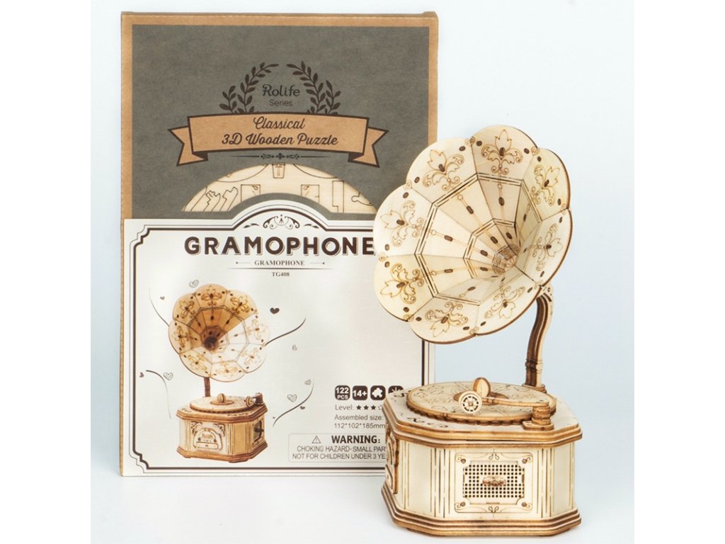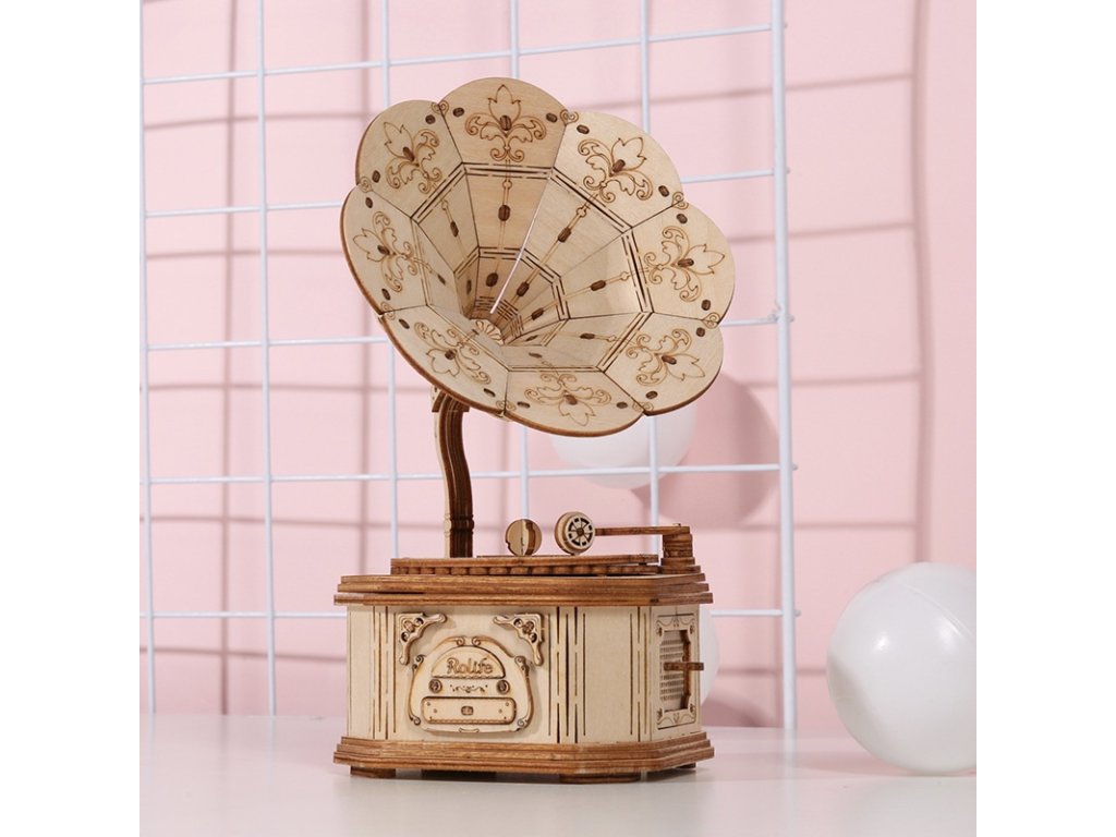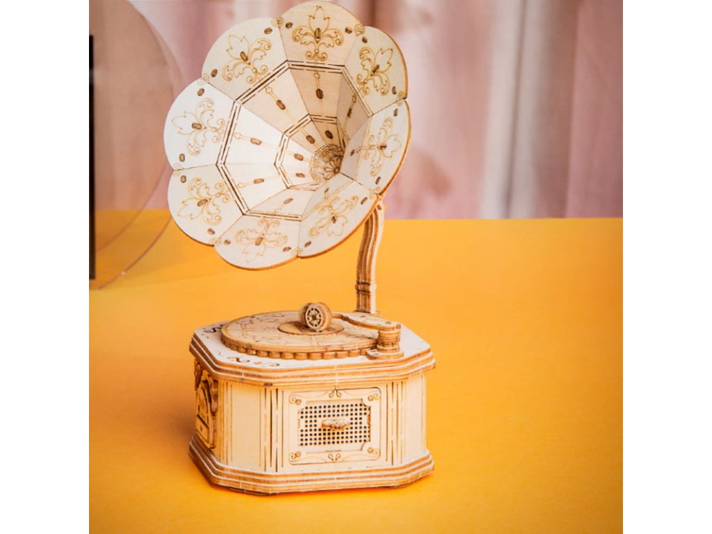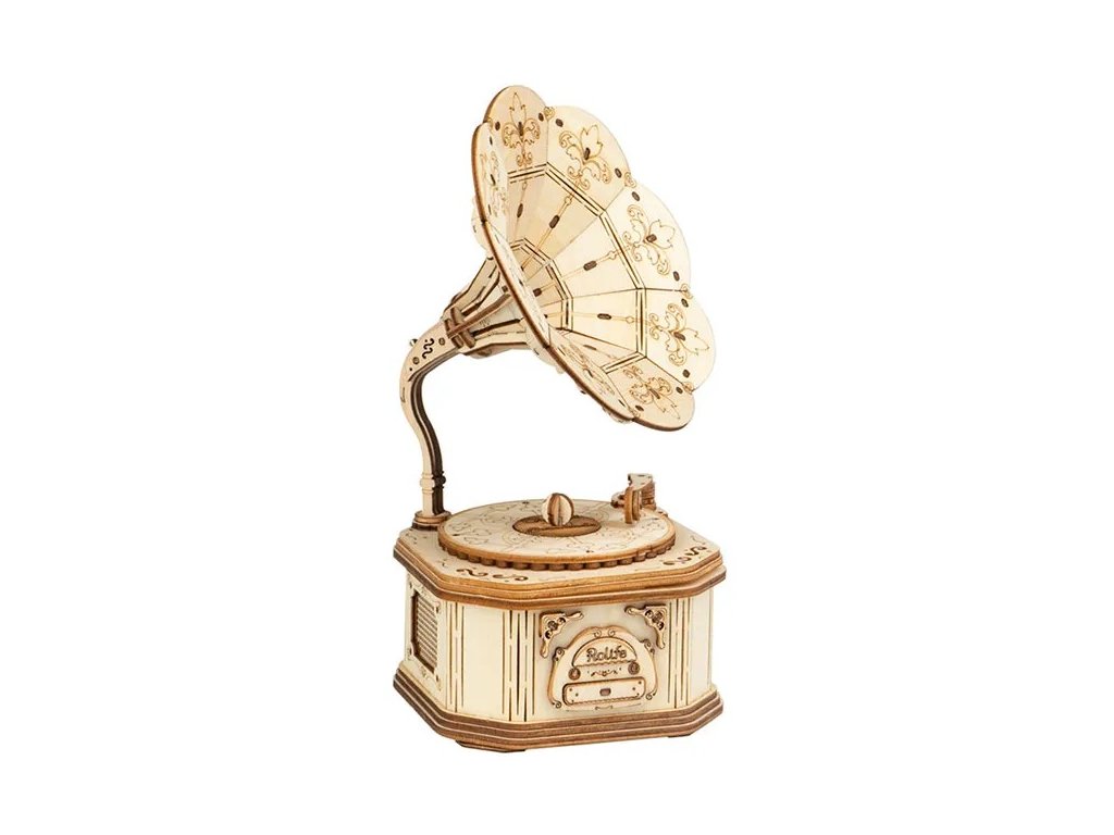RoboTime dřevěné 3D puzzle Starožitný gramofon