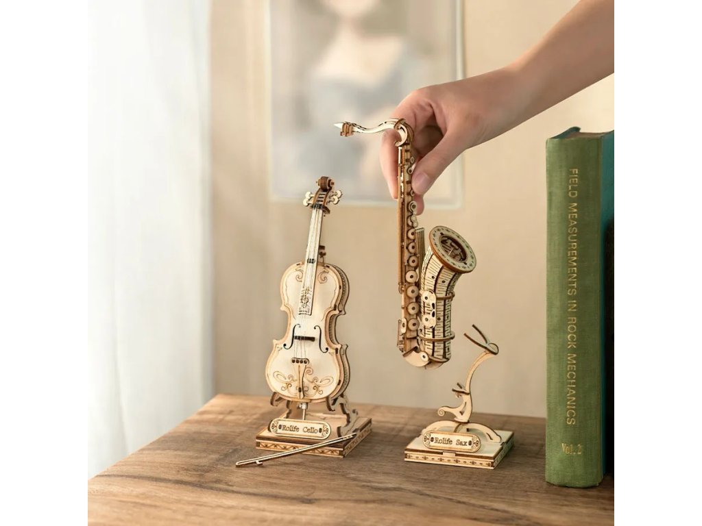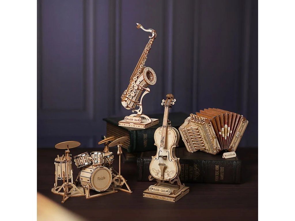 Detailní model hudebního nástroje. Patří do řady skládaček, které jsou určeny k vystavení, nejsou interaktivní a nemají žádné pohyblivé díly. Skládačka je dodávána v nesloženém stavu, balena v kartonové obálce. Vybaveno detailním návodem k sestavení. Hlavní vlastnosti:58 precizně vyřezaných dílkůnízká obtížnost sestavení