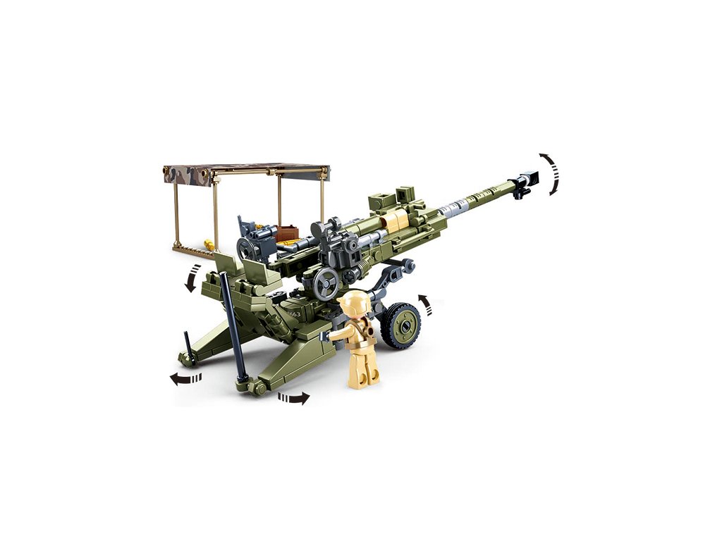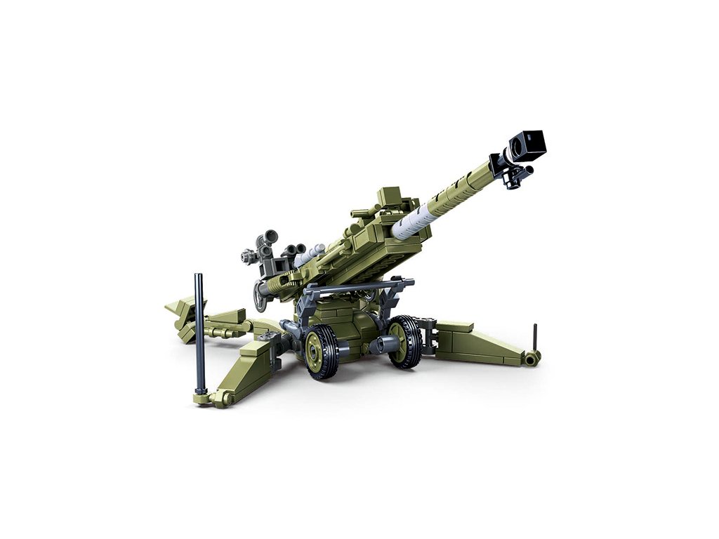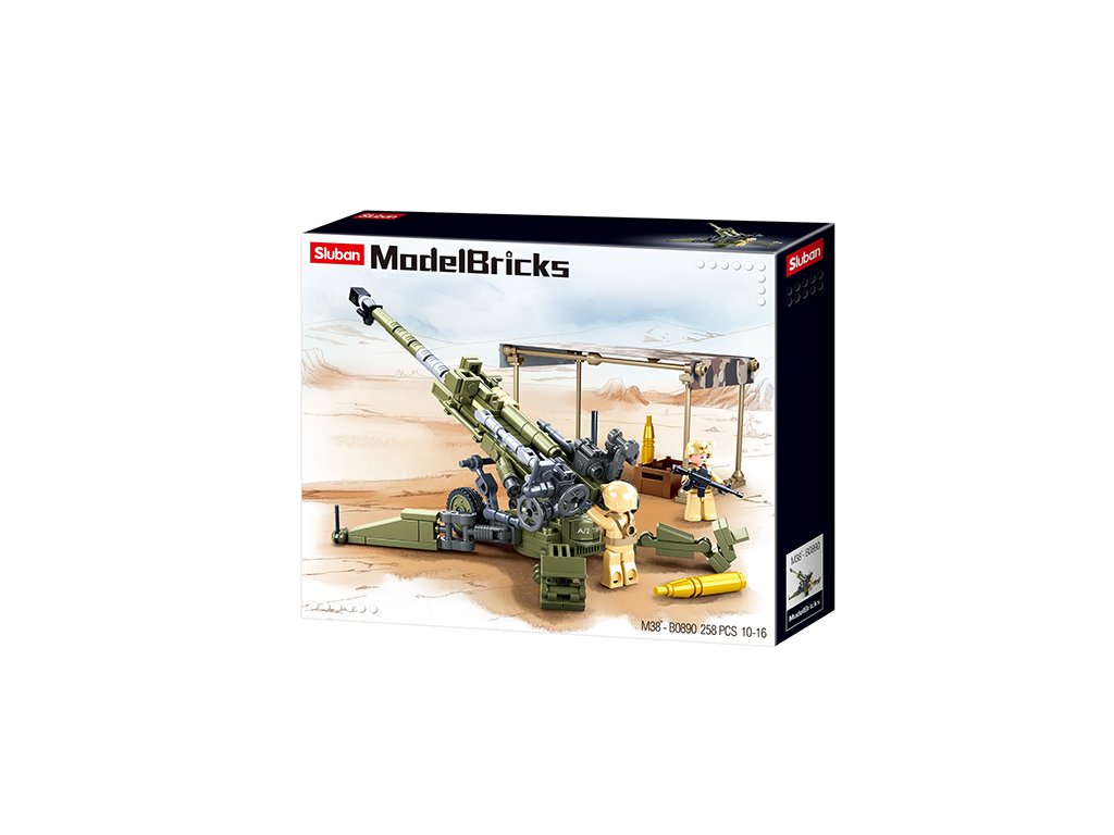 Stavebnice modelu tažné houfnice Howitzer M777 ze série Sluban MadelBricks. Houfnice se skládá ze 258 dílků, po sestavení má spousty pohyblivých částí a je dlouhá 25cm. Stavebnice obsahuje i dvě figurky vojáků, nálepky a tištěný návod.