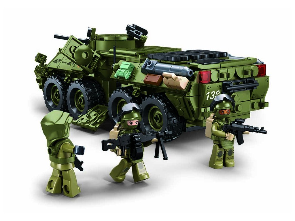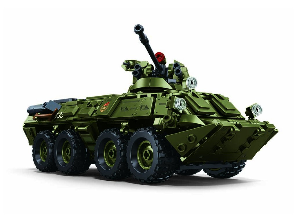 Tato stavebnice představuje detailní model vojenského vozidla BTR-80A, které je osmikolovým obrněným transportérem. Díky čtyřem párům kol zajišťuje vynikající mobilitu i v náročném terénu.
