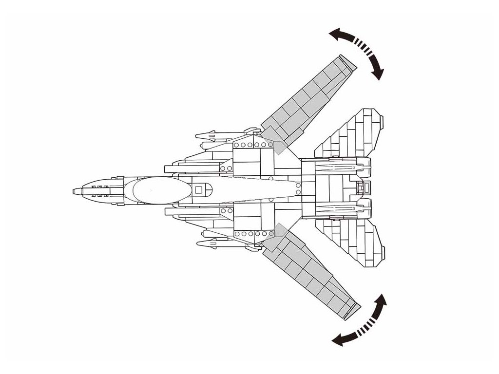 Stavebnice modelu stíhacího letounu s měnitelnou geometrii křídel. Pohyblivé křídla umožňují měnit jejích úhel a tím jejich šípovost. Pohyblivá vodorovná ocasní plocha letounu zajistí stabilitu při letu. Vše to má na starosti zkušený pilot. Délka sestavené stíhačky je 36cm.