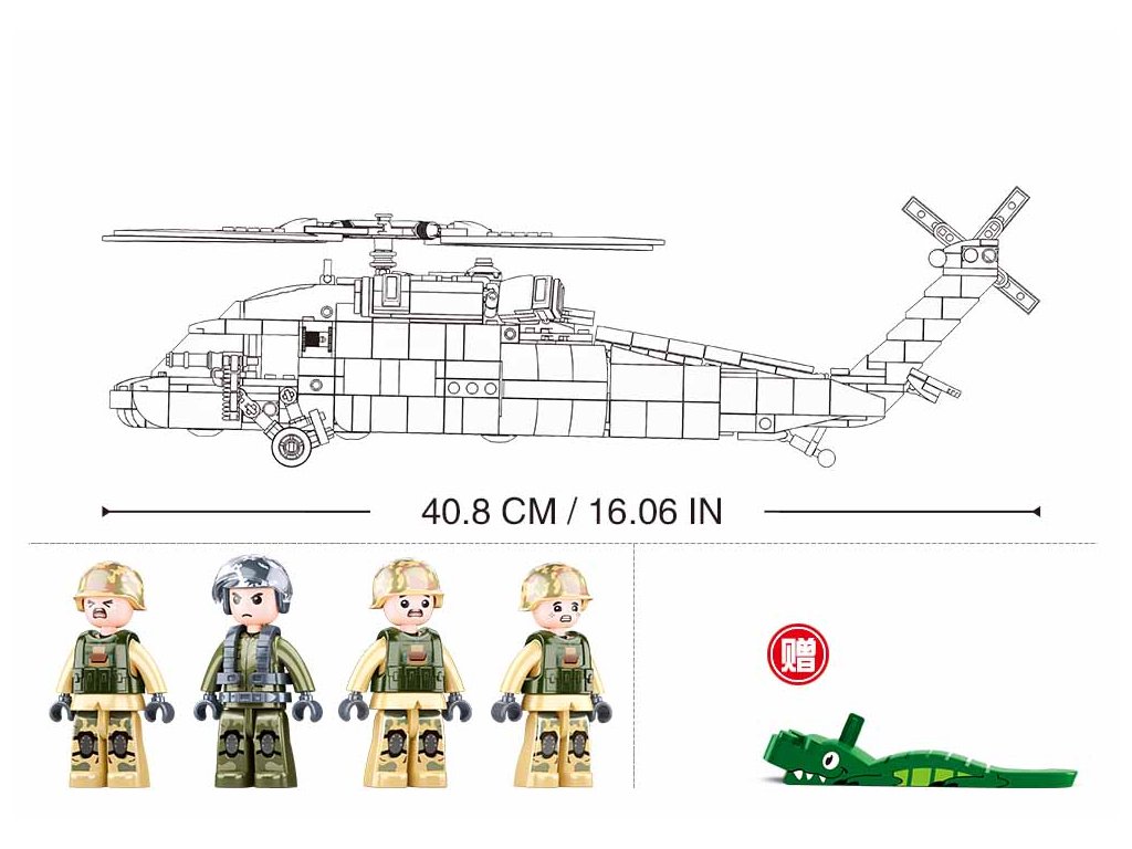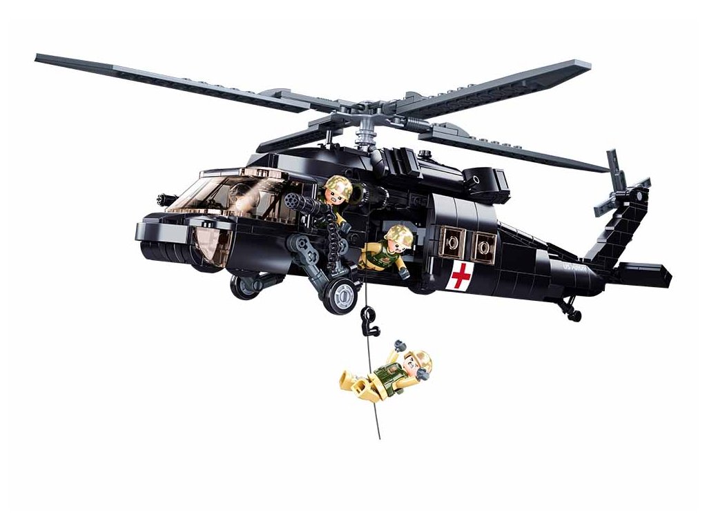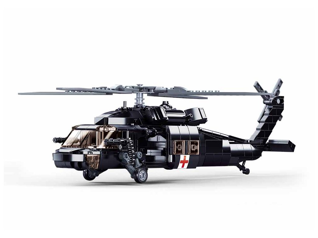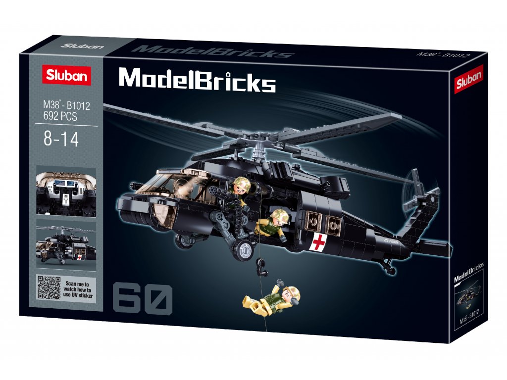 M38-B1012 Lékařská Army Helicoptéra UH-60 Black Hawk je stavebnice z řady Model Bricks. Záchranná lékařská helikoptéra v černé barvě je po sestavení dlouhá téměř 41cm. Stavebnice je vhodná pro děti od 8 do 14 let.