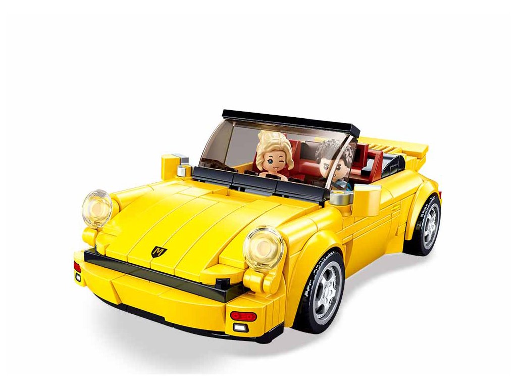 Německý žlutý sportovní vůz je stavebnice z kolekce Sluban Model Bricks. Model žlutého kabrioletu je po sestavení dlouhý 16cm. Součástí stavebnice jsou dvě figurky, tištěný návod a nálepky.