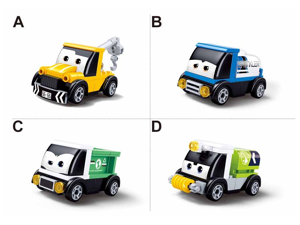 Zejména figurky jsou pýchou firmy Sluban. Mají realistický tvar, hlavičku i zápěstí na pohyblivém kloubu, v pase se otáčejí o 360° a nožičky jsou pohyblivé ve směru chůze a zároveň si zachovaly plnou kompatibilitu s kostičkami. Je to malá figurka s velkou budoucností.