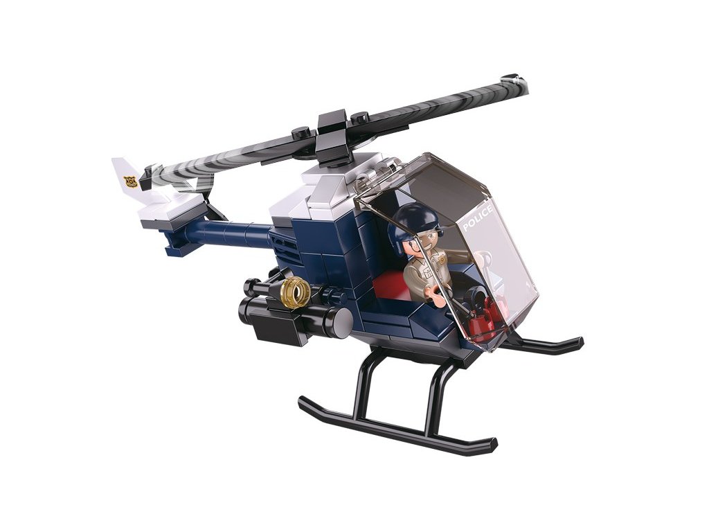 Policie a zloději, série stavebnic Sluban, kde v nabídce naleznete vše potřebné k pořádné honičce za padouchy, kteří se za každou cenu odmítají podřídit zákonům. Policejní hlídkový vrtulník na sledování ujíždějících vozů ze vzduchu by neměl chybět žádné hlídce. Po sestavení je dlouhý více než 15cm. Stavebnice obsahuje 88 dílků, jednu figurku a je jedna ze čtyř stavebnic ze série Policie 4into1 po číslem M38-B0638A až D. Pořiď si všechny tyto čtyři stavebnice a ze všech dílků si podle návodů sestav jednu velkou policejní helikoptéru.