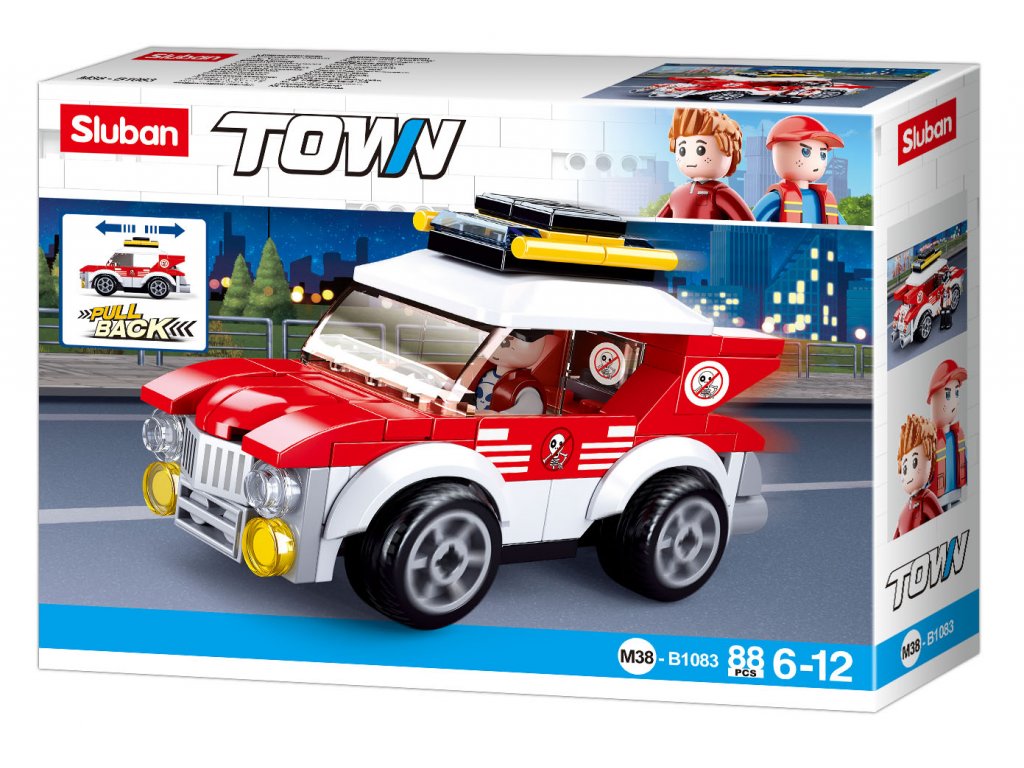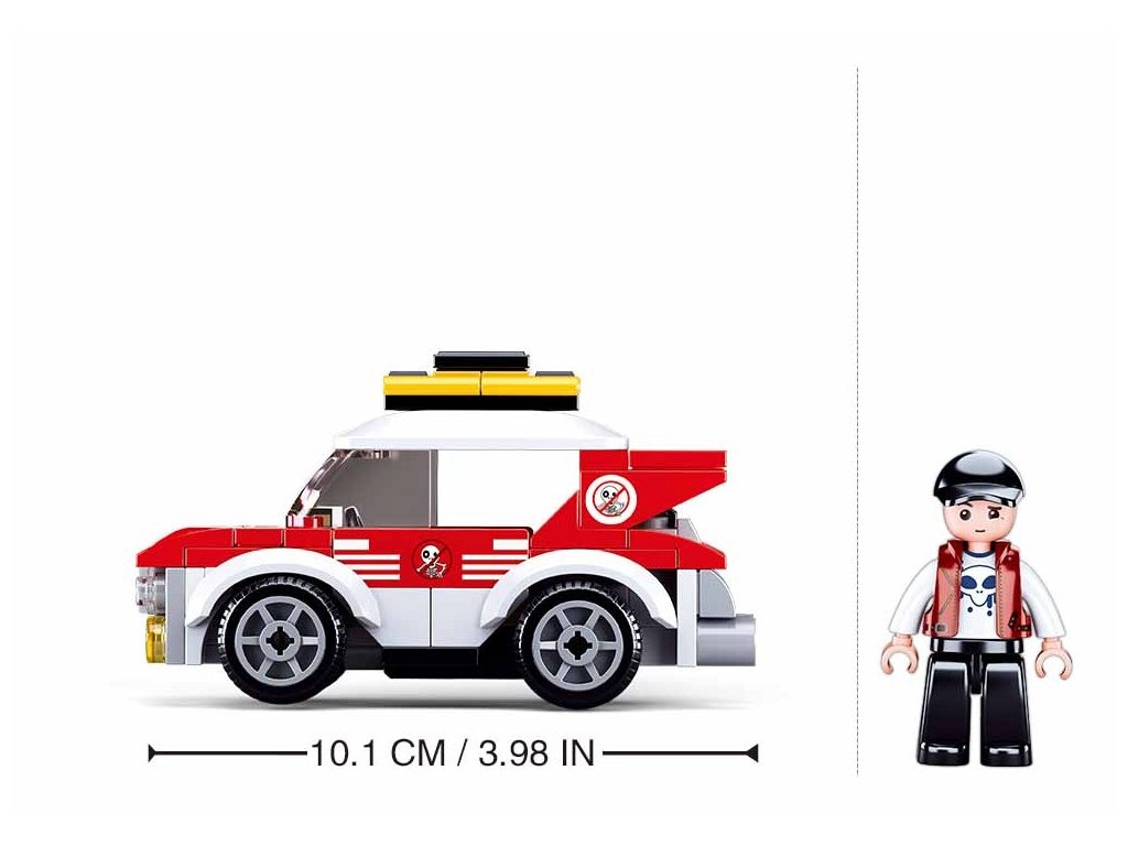 Really vůz je stavebnice červeno-bílého auta na natahování z kolekce Sluban Town. Po sestavení je autíčko dlouhé 10cm. Vhodné pro děti od 6 to 12 let.