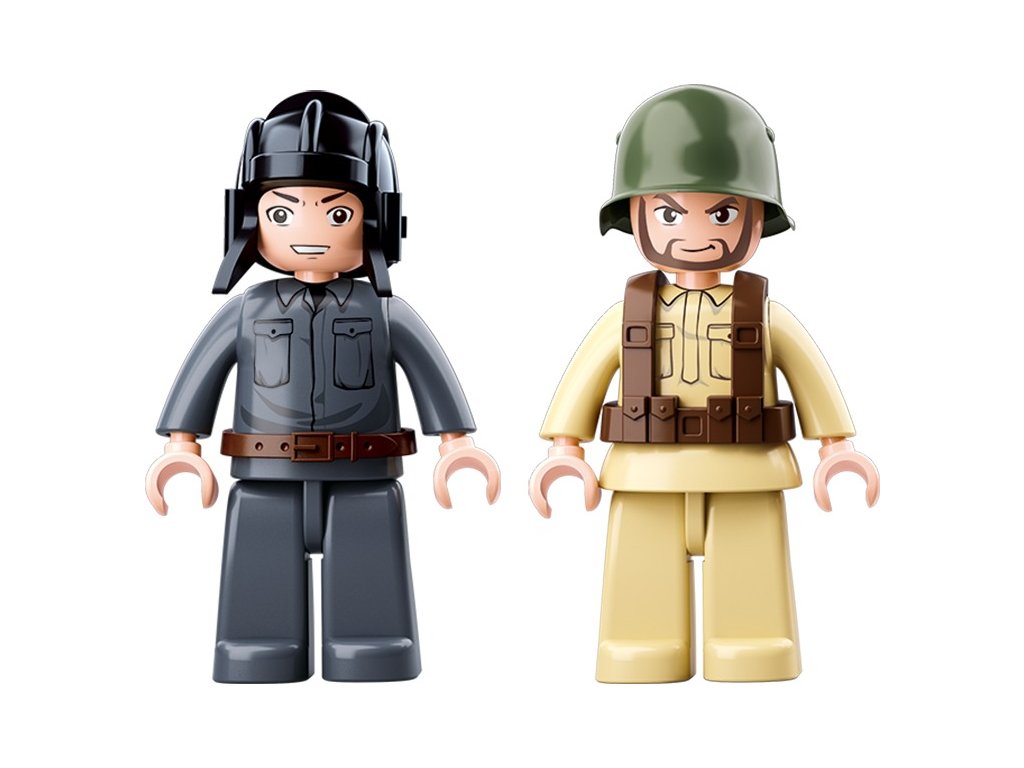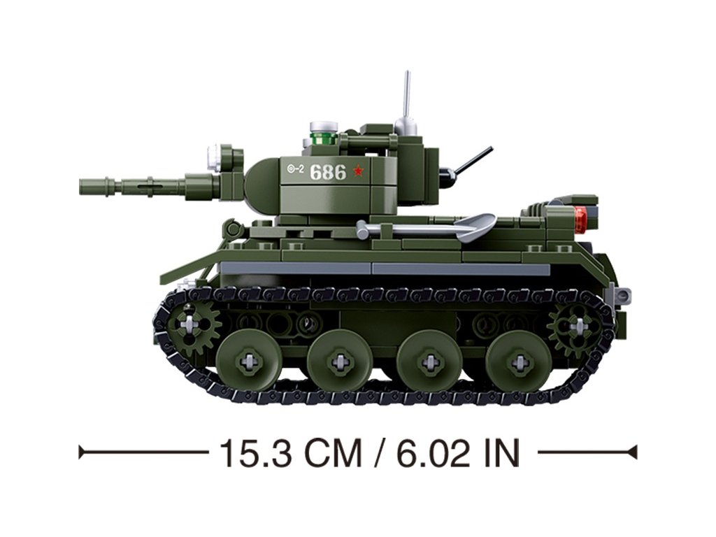 Malý sovětský tank BT7, dva vojáci s vybavením do terénu, celkem 348 dílků. Tank s otočným dělem je po sestavení dlouhý více než 15cm.