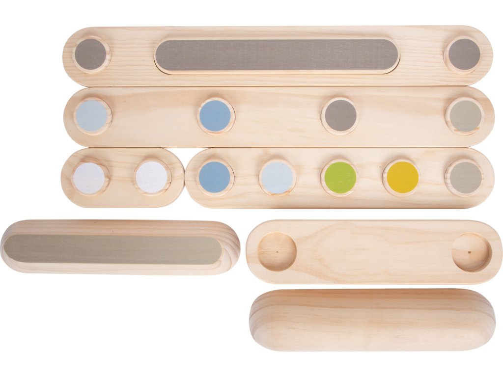 S těmito 7 ks oboustranně zapojitelnými balančními chodníky se vytvářejí jednotlivé trasy a balanční cesty přizpůsobené různým úrovním obtížnosti, které podporují smysl pro rovnováhu. Díky obzvláště jednoduchému otočnému zásuvnému systému, který funguje bez nářadí, mohou děti popustit uzdu své kreativitě. Díky jednoduchému designu a jednoduchému tvaru v kombinaci s moderními barvami a množstvím přírodního dřeva se kladiny dokonale přizpůsobí každému obývacímu i dětskému pokoji. Obtížnost cesty lze přizpůsobit schopnostem a věku dětí. Balanční úsek "roste s dětmi". Pohybové hračky jsou absolutní trend a neměly by chybět v žádné řadě motorických a pohybových hraček. Vhodné také i pro terapeutické účely. Balanční chodníky lze velmi dobře kombinovat s Balančními kameny Adventure (LE12242) a lze je ideálně doplnit dalšími produkty z řady "Adventure". Hlavní vlastnosti: balanční hra pomáhá s rozvojem rovnováhy a koordinaceděti podpoří v důvěře ve vlastní schopnosti jednoduchý design vhodné i pro terapeutické účely