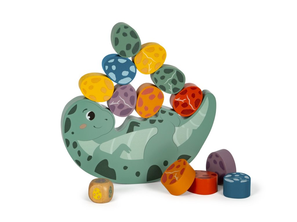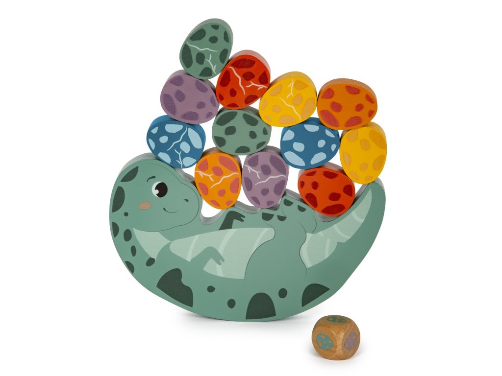 Chcete zažít zábavu s prehistorickým skládáním? S touto balanční hrou máte jedinečnou šanci! Hra je vyrobena ze 100% certifikovaného FSC® dřeva. Hráči budou potřebovat pevnou ruku a koncentraci, aby naskládali dinosauří vejce na balancujícího dinosaura. Ale buďte opatrní! Když dinosaurus ztratí rovnováhu a příliš se kývá dopředu a dozadu, dinosauří vejce spadnou. Aby byla hra ještě složitější, pokročilejší hráči mohou hrát pomocí kostky. Kostka ukazuje, které vejce by mělo být umístěno na dinosaura jako další. Pokládání vajíček a vyvažování dinosaura trénuje jemnou motoriku dětí, koordinaci ruka-oko, koncentraci a trpělivost. Small foot Balanční hra Dino je vzrušující dovednostní hra pro jednoho i pro celou rodinu. Je ideální pro všechny fanoušky dinosaurů! S hračkami z produktové řady "Dino" jsou tématem fascinující prehistoričtí tvorové, kteří upoutají pozornost lidí všech věkových kategorií. Tyto dřevěné hračky podporují rozvoj motorických dovedností, inspirují dětskou kreativitu a představivost a povzbuzují děti, aby se dozvěděly více o přírodě a historii těchto pravěkých obrů. Hlavní vlastnosti: ideální pro nadšence dinosauřího světabalancující dinosaurus s 12ti vejciupravitelná úroveň obtížnosti – s kostkou nebo bez nítrénuje trpělivost, koncentraci, jemnou motoriku a koordinaci ruka-okovyrobeno ze 100% FSC® dřevaherní zábava pro celou rodinu Značka a certifikát FSC® (Forest Stewardship Council) zaručuje, že dřevo, ze kterého byl produkt vyroben, nebylo vytěženo nelegálně a pochází z lesů obhospodařovaných šetrným či přírodě blízkým způsobem, ve kterém jsou dodržovány přísné environmentální a sociální požadavky. Značka FSC® na výrobku znamená, že svým nákupem pomáháte chránit lesy a podporujete šetrné, odpovědné či přírodě blízké hospodaření, díky kterému jsou naše lesy stabilnější, zdravější, mají přirozenou druhovou skladbu a lépe odolávají negativním následkům klimatických změn.