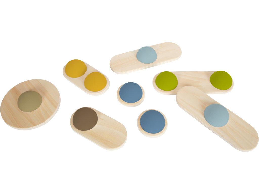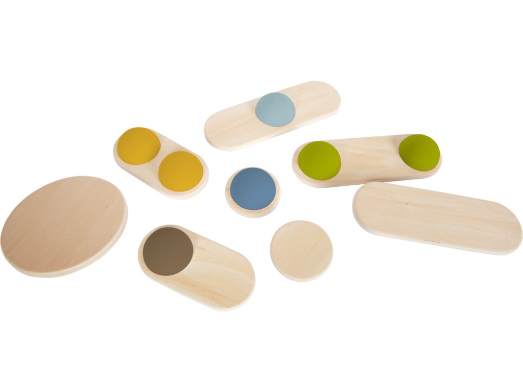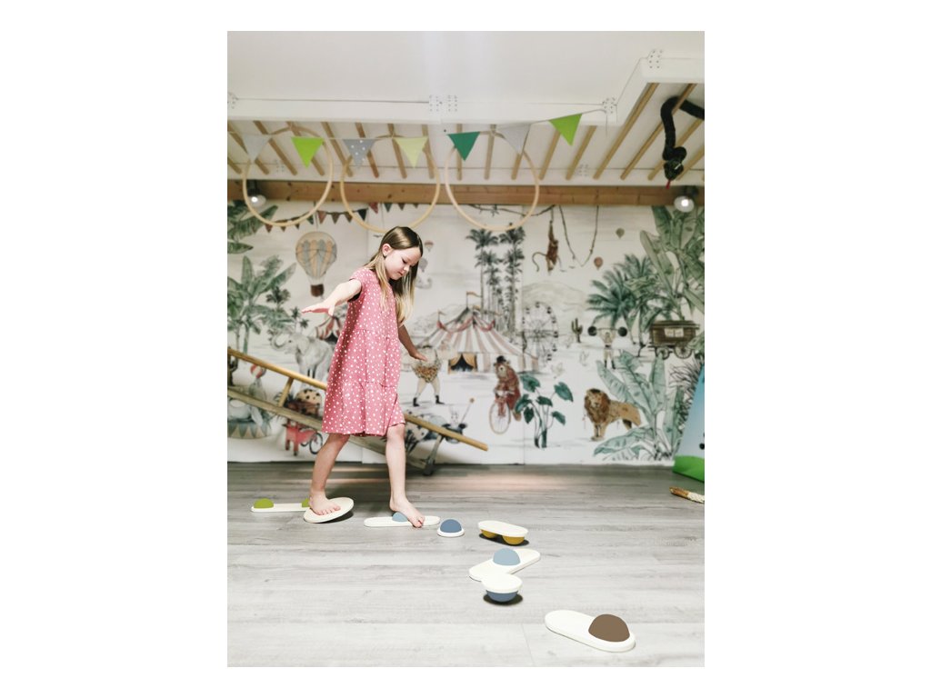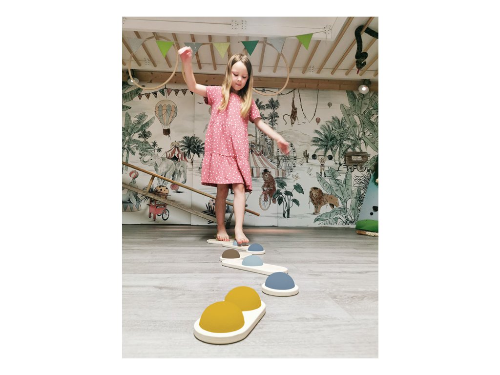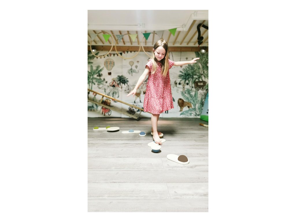 Oboustranné balanční kameny z pevného dřeva, polokoule mají jinou pozici na každém dílku a jsou vyrobeny z pevné pěny. Náročnost může být upravena, možno používat celou sadu nebo jen její části. Pokud sadu doplníte o další produkty z řady Adventure, můžete si postavit opičí dráhu! Hra trénuje rovnováhu a koordinaci, hravě děti podpoří v důvěře ve vlastní schopnosti. Také vhodné pro terapeutické účely. Balanční kameny promění dětský pokoj během sekund v zemi dobrodružství. Jednoduchý design a tvary, mnoho přírodního dřeva, na tyto balanční kameny je radost pohledět. Hlavní vlastnosti: Hračka z dřeva a gumyBalanční hra pomáhá s rozvojem rovnováhy a koordinaceGumové polokoule mají na každém dílku jinou pozici